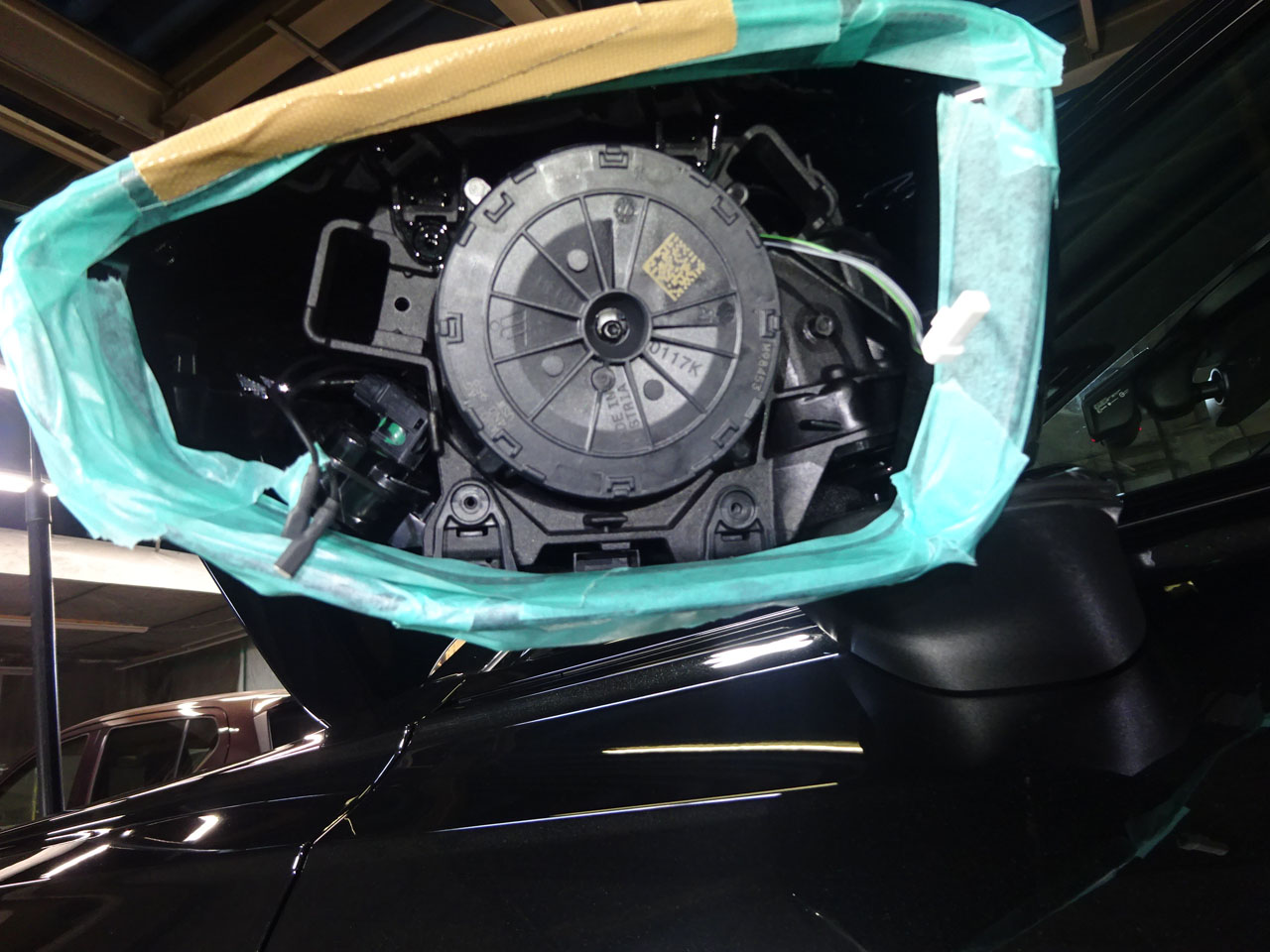 組み立てはパチンとはめ込みボルトで固定するタイプ、サイドアシストのワーニングインジケーターも忘れずに移設、外すのが死ぬほど固い!と毎回顔が赤くなります。はい、苦労の末に完成!特にボディカラーがブラックやグレーの車両との、同じ色に見えて実は違うという微妙なコントラストがすごくいいんですよね!