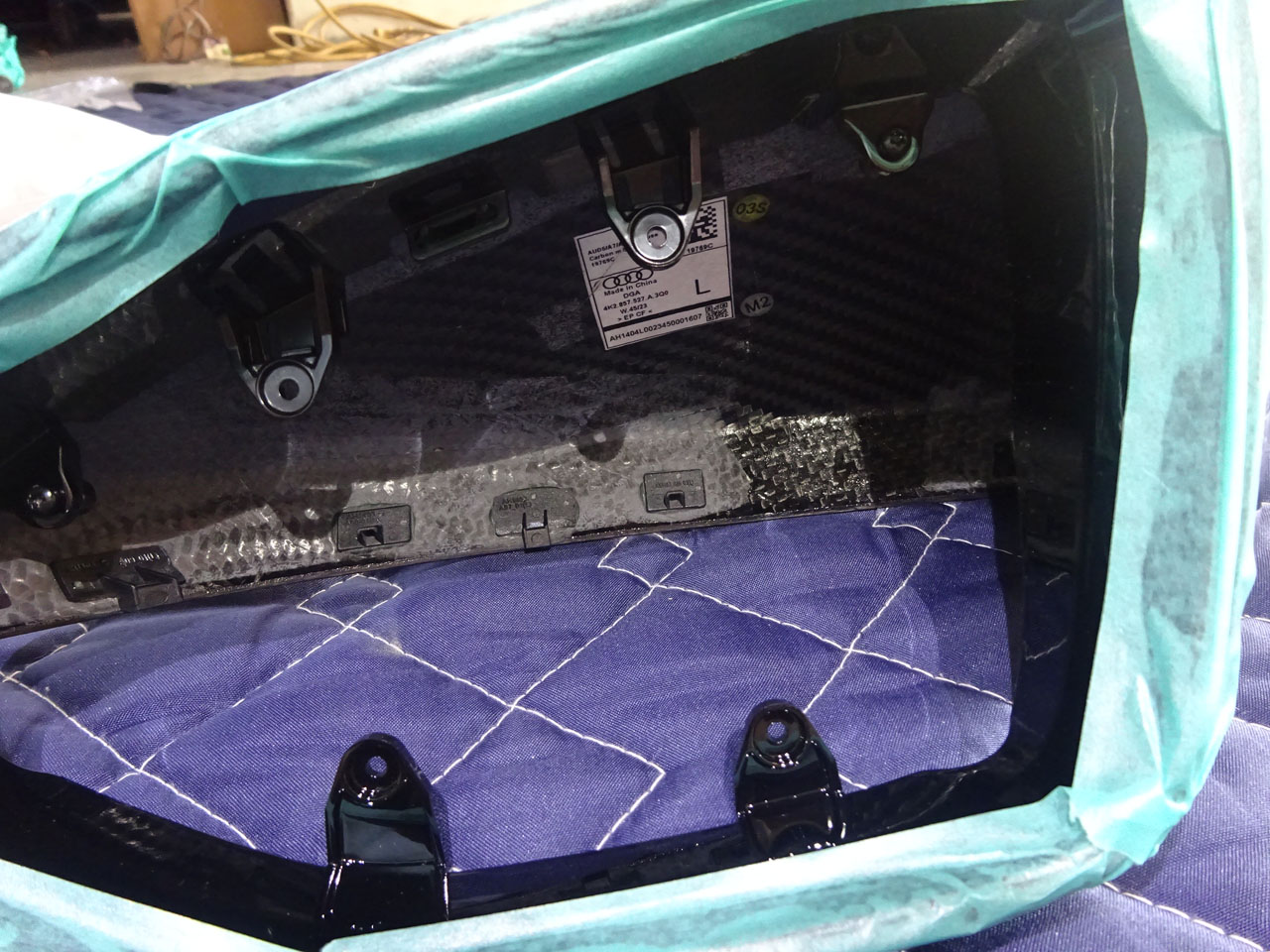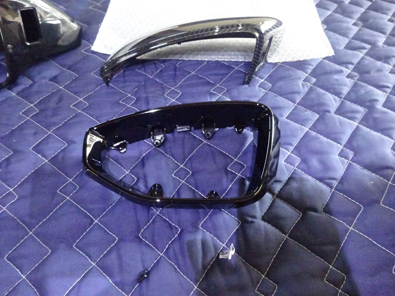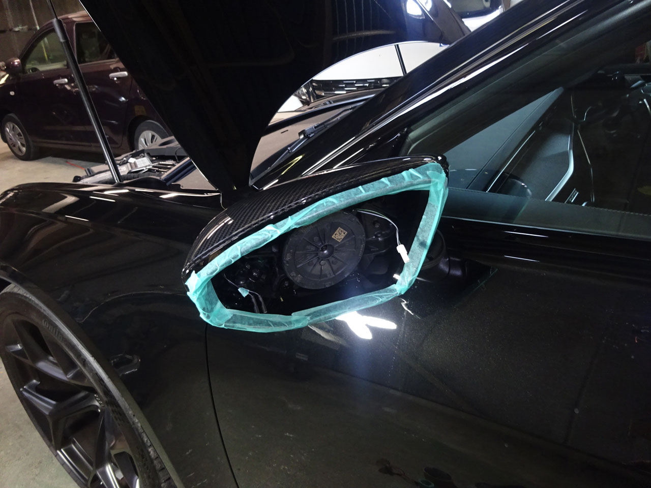 RS 6アバントの続きをどうぞ。まずはAudiAG純正RS 6/S6/A6(F2)用カーボンミラーハウジングセット への交換です。また寿命が縮まる・・・今回もミラーガラスが割れなくて本当によかった!A6系はミラーガラス周りがハウジングと一体、一難去ってもまた一難、前に倒すように外すのがひと苦労です。カーボンはハウジングがカーボン、ガラス周りがグロスブラックで別パーツ、これが先代と違って大幅にコストダウンできた理由になっています。