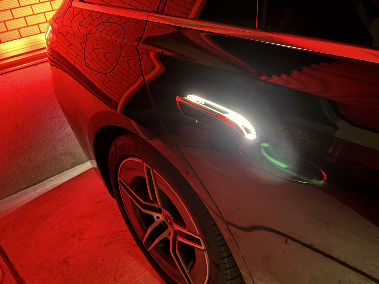 たまには他ブランドのお勉強もしないといけませんよね現行Eクラス220dステーションワゴンを見学しました。まあ夜はピカピカイルミのすごいこと!近づいただけでフラッシュドアハンドルがひょいっと出てきて、それだけじゃなく眩しいくらいに光って位置を教えてくれます。OPてんこ盛り車両でハイパースクリーンも付いてますし、間接照明がすごい!最近アウディはラインライトばかりで間接照明が寂しいですよね・・・私はこの間接照明が大好きなので、アウディももう少し頑張ってくれればうれしいなと。ルームランプ周りのイルミは特にきれいで満足度高し。アウディあん、LINをちょっとそこまで引けばいいだけで簡単じゃないですか(笑)A8のルームランプにはラインライトはありますが、とりあえず付いてますという感じ・・・残念。いちばん私が感動したのは、何とイルミは単色だけではなくマルチカラーも12パターンから選べる、アウディのマルチカラーとは意味が違って、同じラインの中でなぜか色が途中から変わるんです!電源どうなっとんじゃ~外して見たい!と思ったのは私だけでしょう(笑)後で冷静に考えると「あ、なるほどああなってればそうなるよね!」とわかりました。きっと投影するチューブって端からLEDをパチンとはめるのですが、そのはめこみ口がそこだけじゃなく途中にもあって、そこは端とは違うカラーの光れという指令がくる、そうすれば・・・そんなの説明してもわからないですよね(笑)!