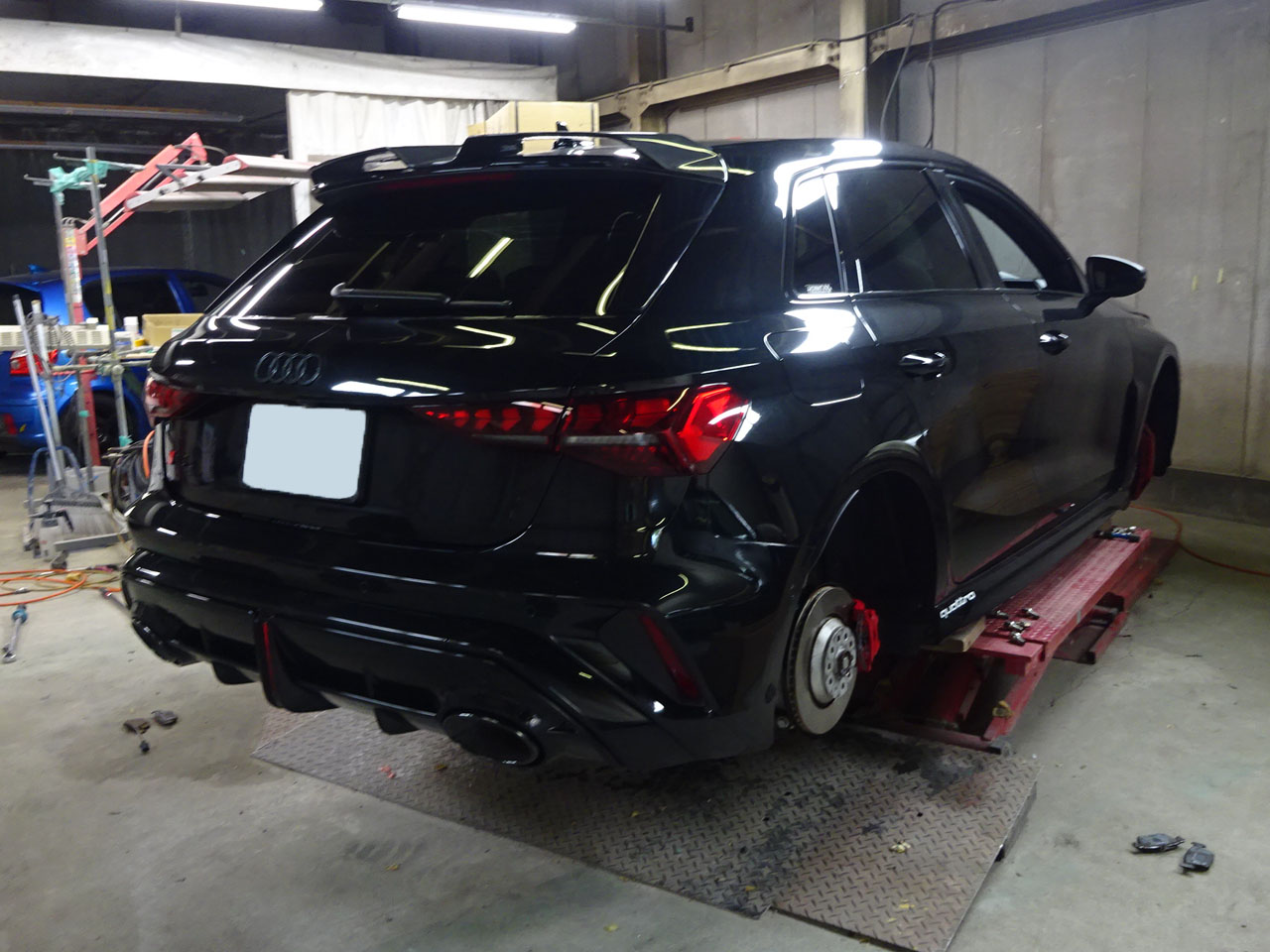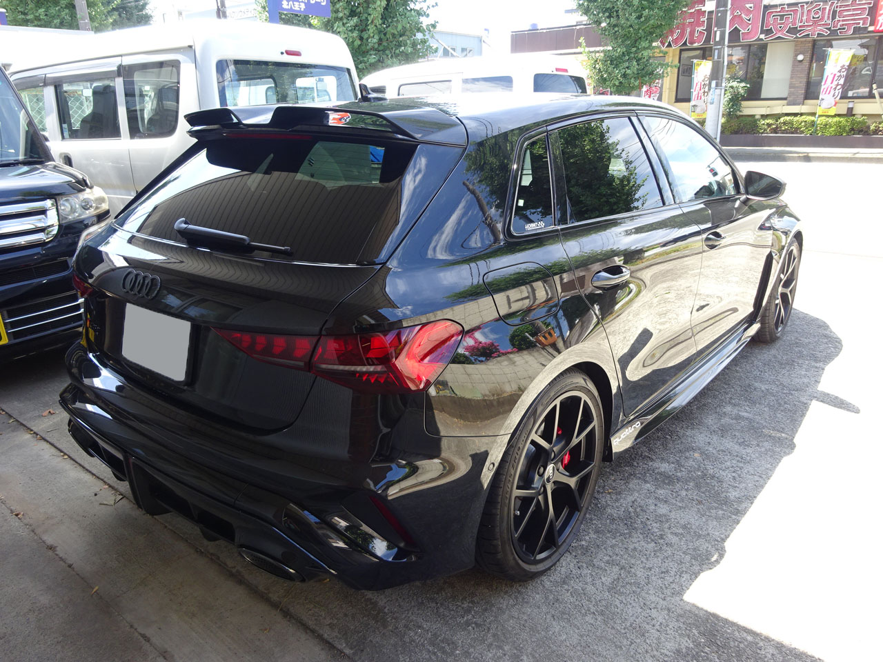 FL後RS 3スポーツバックでお客様が来店ですありがとうございます。今度はブラックですか~売れてますね~何よりです。しかももうAudiAG純正RS 3/S3/A3 S lineスポーツバック専用カーボンルーフスポイラーとAudi純正RS 3/S3/A3(GY/8Y)専用カーボンミラーハウジングセットが装着されています。私と同じくカーボンフェチでしょうか(笑)
