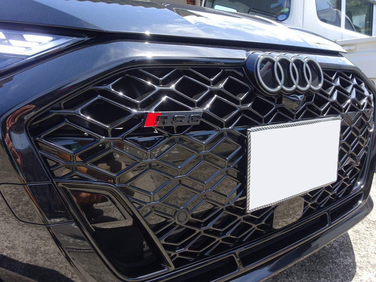 AudiAGさん、やっぱり気になるんですよ!どこかで見つけたエンブレムをご自身で加工して付けられたそうです。確かどこかでもらったという同じエンブレム私見ました・・・中国って型代ってものが発生しないのでしょうか(笑)位置的にはやはりここ、G-Speed+Audi純正FL後RS 3(GY/8Y)グリル用ブラックエンブレムも是非ご検討ください!今回はご利用いただきましてありがとうございました。