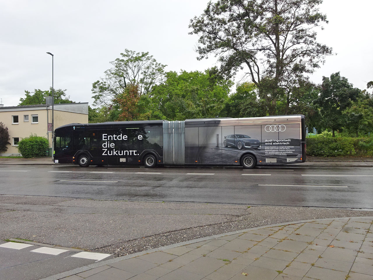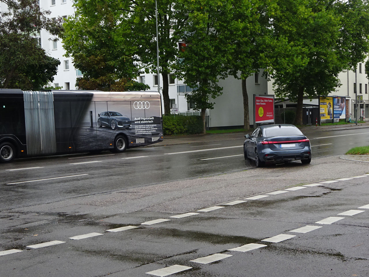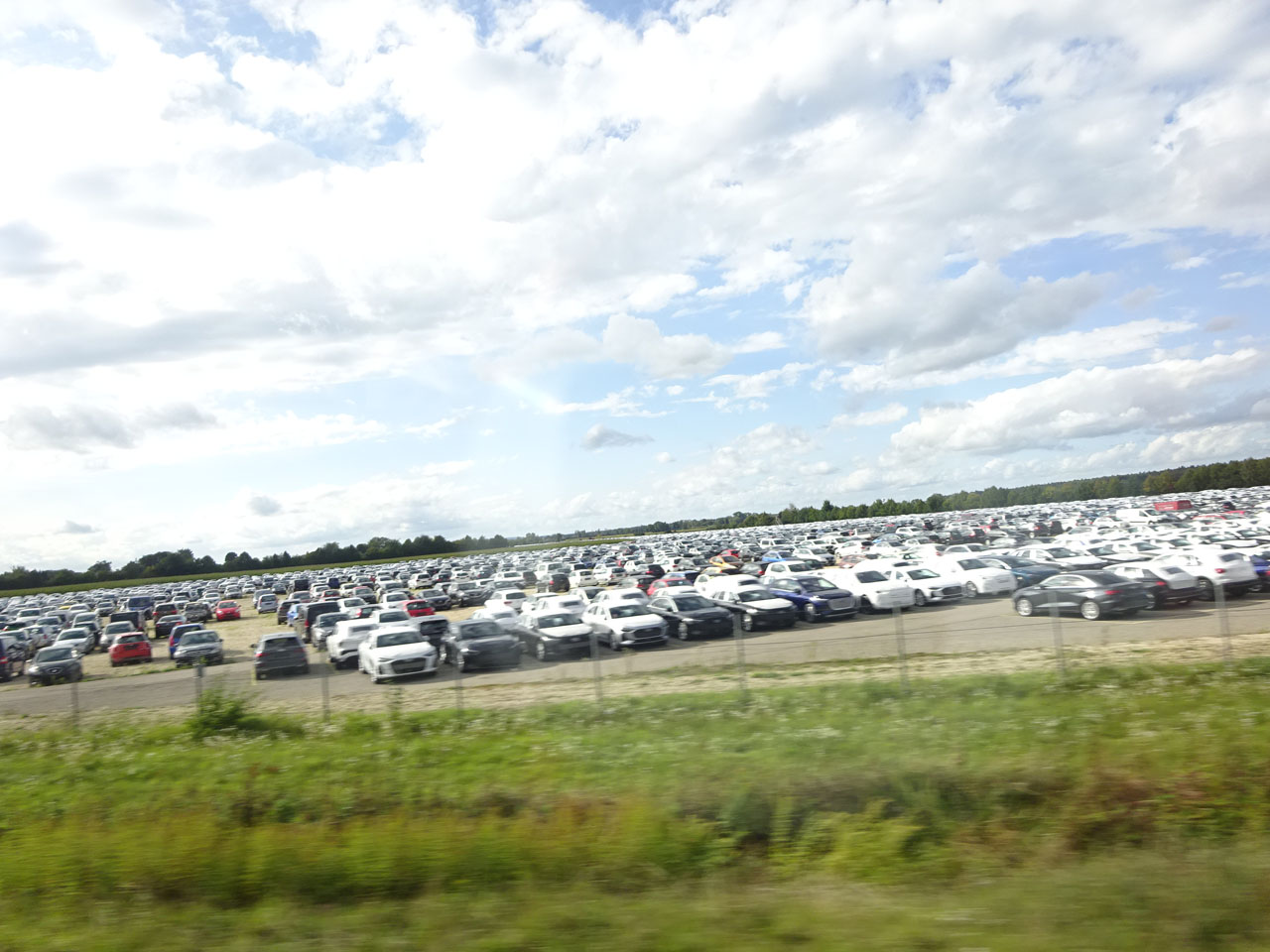 偶然撮影したA5セダン、もしかして同じ車?と思ったらナンバーが違う。ただの偶然でした。でもまだ新しいからか現行A5はさほど多くない印象、セダンのこの均整の取れたスタイル、大好きですが、次期型があのラジカルなんちゃらになったらどうする!?超長いバス、たまたま私も今回帰りに乗ったのですが、2両もあるのにどこからか湧いてくるようにまだ10代?みたいなアウディの作業着を着た若者がすごい数乗ってきて、正直満員電車と同じでした(笑)どうやらシフトが終わって帰る時間だった模様。バスの全面広告はA6e-tron「未来を発見せよ」ですって。インゴルシュタット中央駅で私と多くの人が降りたようですので、やはりまだ若いから電車通勤なんでしょうか。中央駅から私はアウクスブルクのホテルに向かう大好きなディーゼルの超ローカル線に乗ったのですが、同様にアウディの若者も結構乗ってましたね。で例のごとく隠れカープールを発見!もう見渡せないくらいの広さ、何台あるんでしょうね・・・さすがにこの広さは工場内には用意できないんでしょうね。ローカル線に乗るのも恒例になりそう(笑)もちろんローカル線とはいえ鉄道パスが使えます。