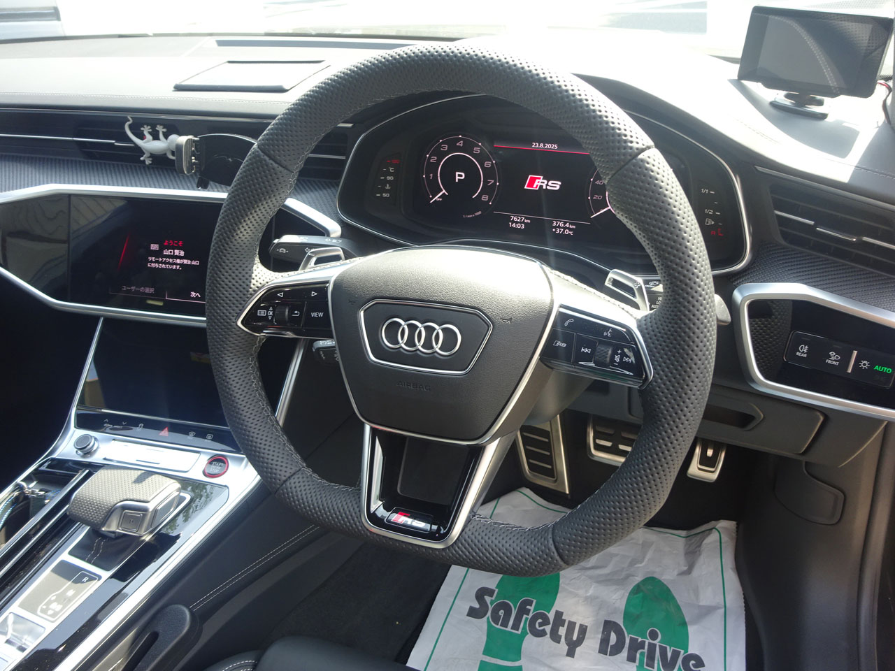 RS 7スポーツバック・パフォーマンスでお客様が来店です。ありがとうございます。早速ご用命はというと気になるこちら、やはりですよね~RSモデルの証しであるオールパンチングでもなく、フラットボトムでもなくというステアリング。ディーラーさんが交換を躊躇ということで交換もご依頼いただきました。