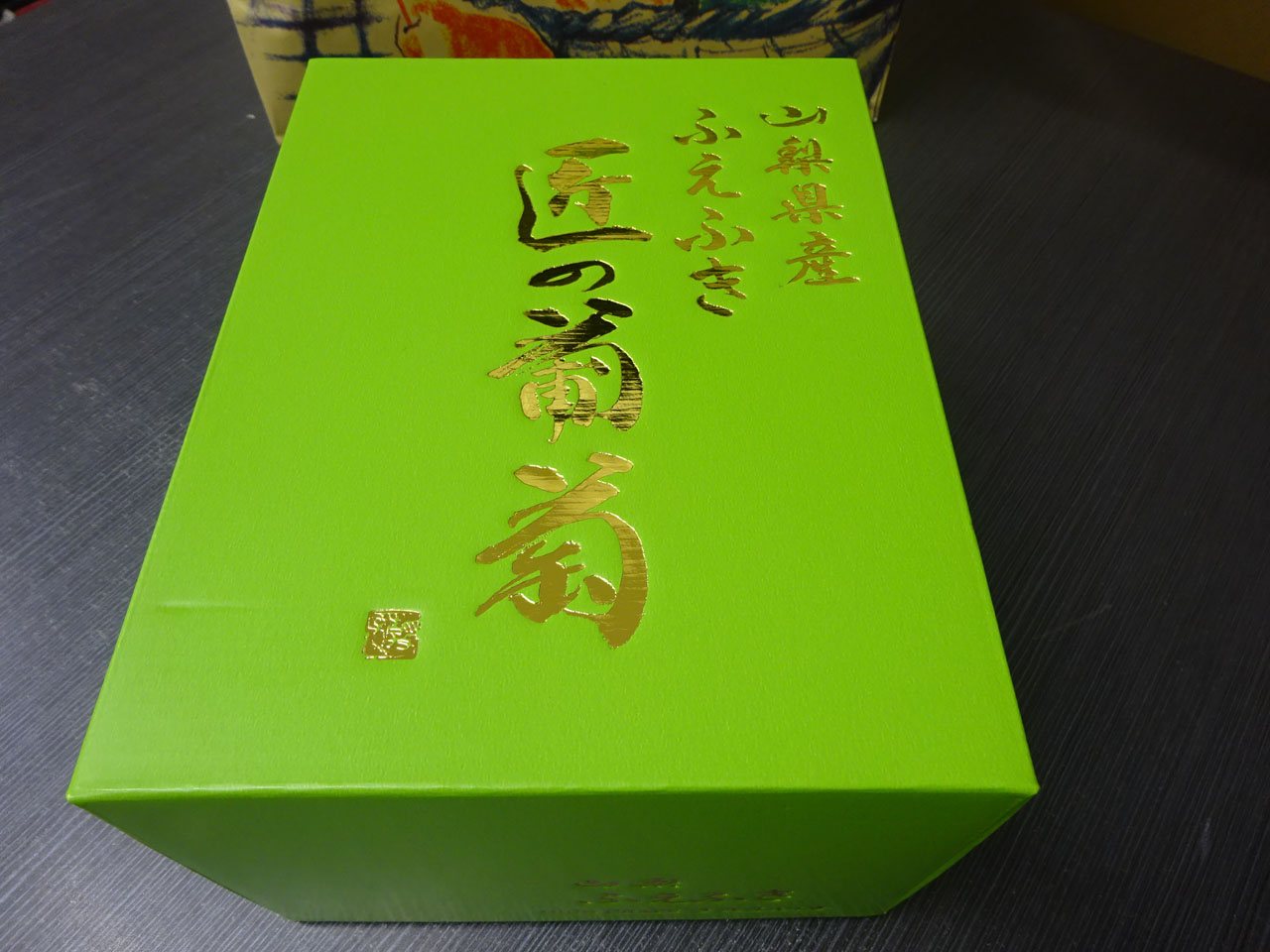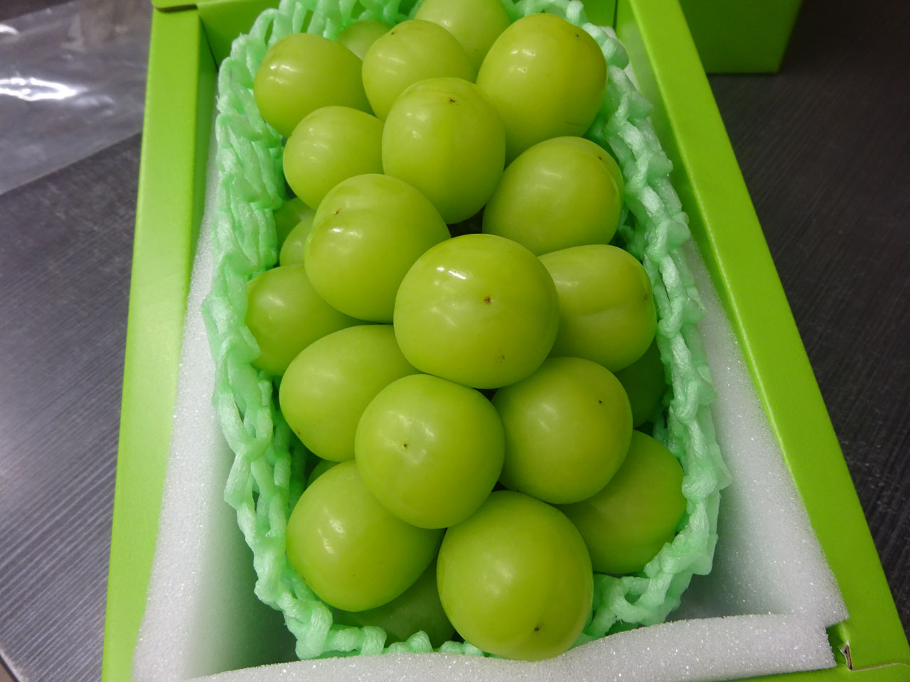 おみやげまでいただいてしまい恐縮です。山梨といえば巨峰を栽培量で抜いたというシャインマスカット、大粒で箱入り!わざわざありがとうございます。何と私はこの期に及んで今年の初物、1粒ほおばったら、シャキーンと目が覚めるほどの甘さとみずみずしさ、もう後先考えずに思わず10粒くらい食べてしまいました(笑)これはスーパーで売っているのと比較せねばと購入、んーん、やっぱり別物・・・