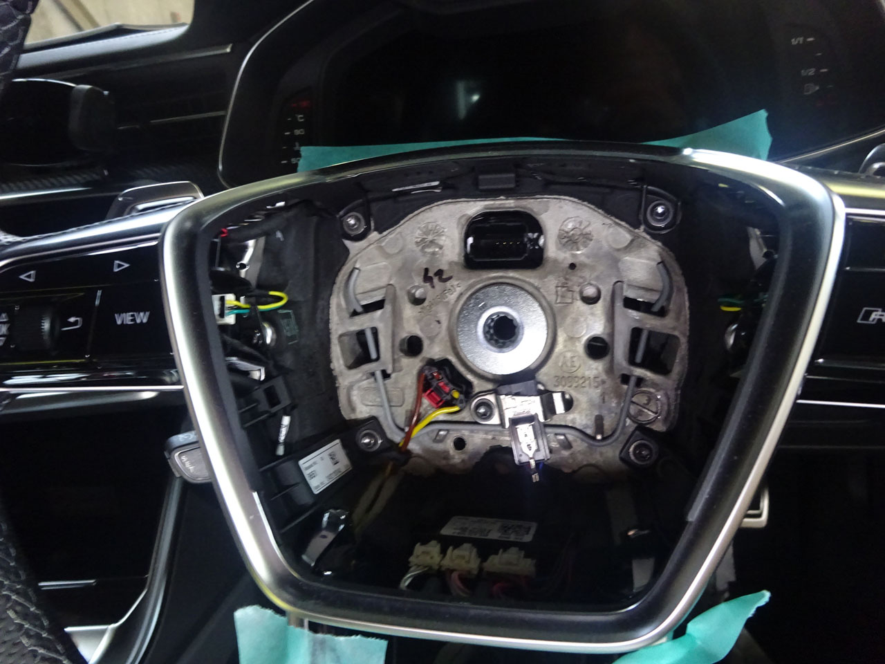いつもどおりエアバッグを外し、ステアリングを外し、もうルーティーン(笑)ハイ、オールパンチング、フラットボトムの出来上がり!これじゃなくちゃいけませんよねRS 7/6の必須アイテムかも!?タイプはオールパンチング/グレーステッチを選択、他にはレッドステッチや、アルカンターラのタイプも選択可能です。もちろんステアリングヒーターやRSモード等機能は一切失いません。商品ページはAudiAG純正RS 6/RS 7(F2)用各種フラットボトムステアリングとなります。次回は是非Audi純正A6/S6/RS 6(F2)レザーパッケージ用エアバッグはいかがでしょうか。ぐっと質感が上がると思います。