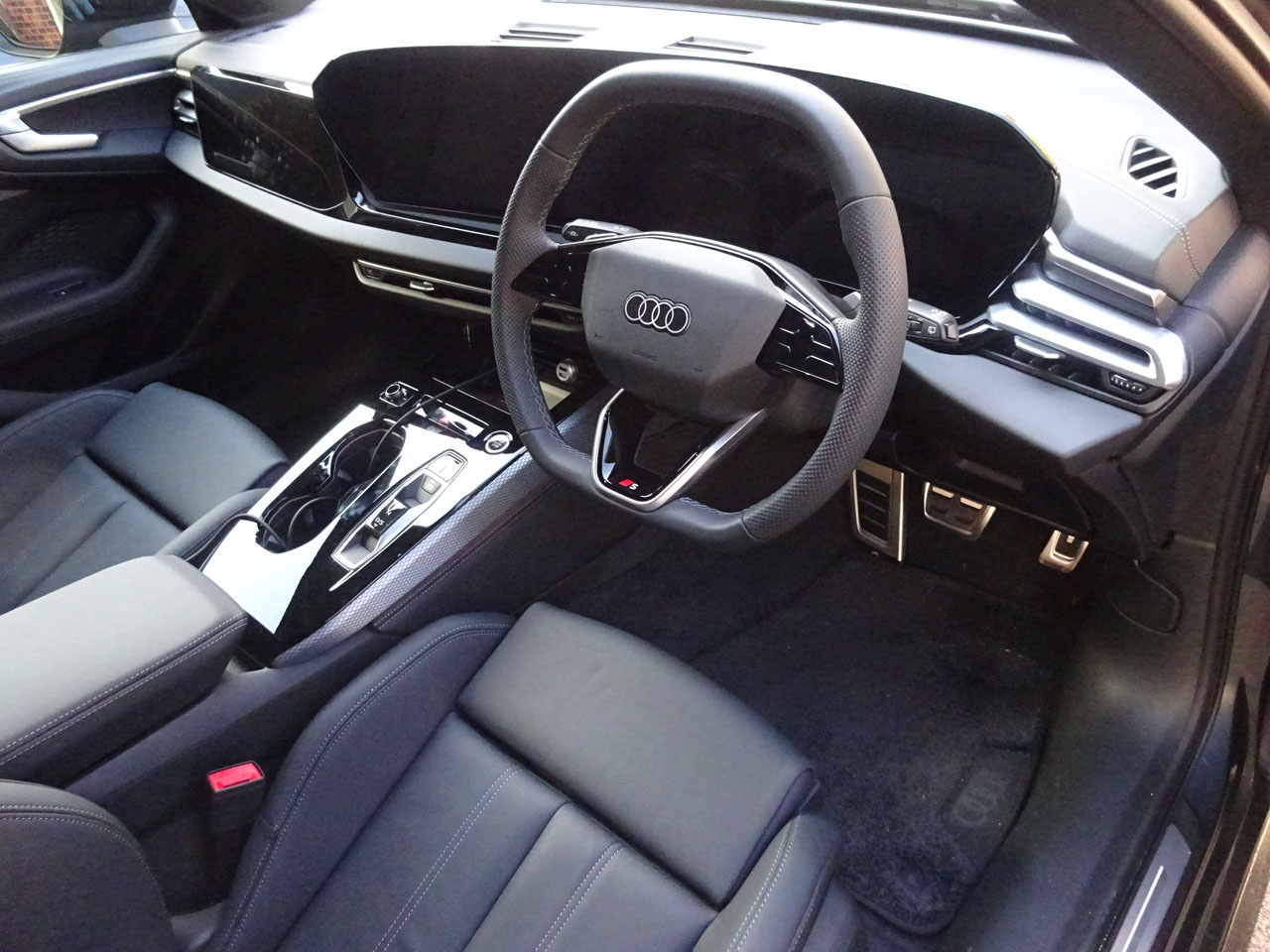 ブラックインテリアいいですね!バナジウムルックじゃないのも新鮮、細かくはエアバッグもフォーリングスエンブレムがシルバーとダークグレーで分かれてます!変なところが細かいんですよね(笑)G-Speed号エディションワンはパステルシルバーインテリアにバナジウムルック、いつもそれを見ているので・・・でも欲を言えばレザレットのデコラティブパネルがあまりに周りと馴染みすぎてしまうので、A5もS5のようにアルカンターラにするといい意味で浮いて素敵かも知れません!