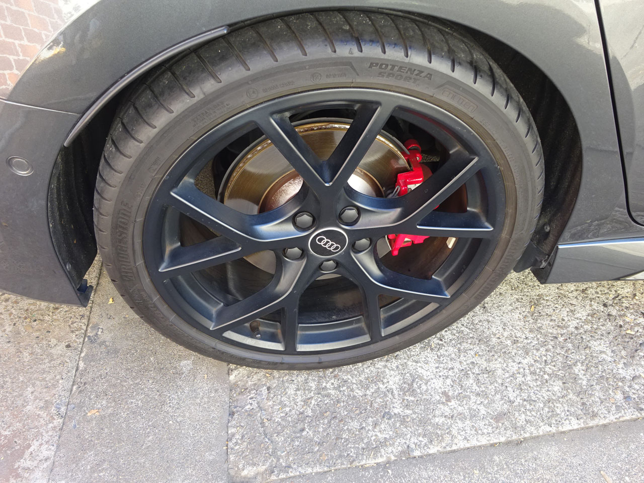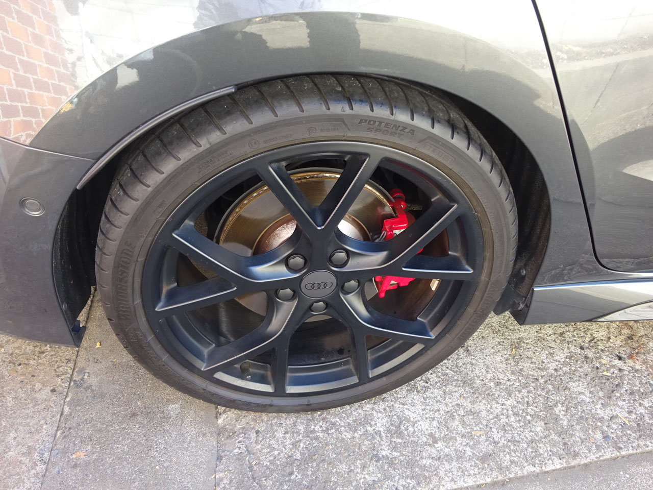 次はマットブラックホイールにはもう欠かせない?AudiAG純正オールブラックセンターキャップ4個セットへの交換です。吸盤があればどなたでもできると思います。直径60mm以内のそれこそ量販店で売っているようなもので大丈夫です。私が使っている吸盤もまさにアマゾンポチっというタイプ、引きが弱いので少しカスタマイズしていますが(笑)ポンッ!と外れるのが意外にクセになる気持ちよさです(笑)はい、完成しました!ノーマルだとセンターだけシルバーで浮いた感じですが、ぐっと引き締まり馴染む感じになります。ご利用いただきありがとうございました!