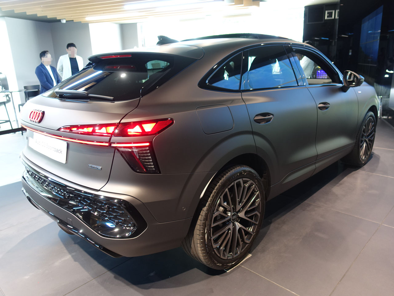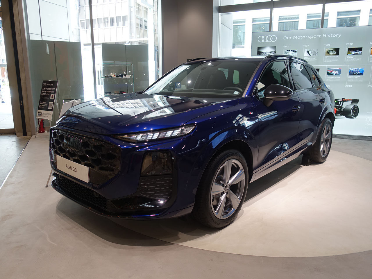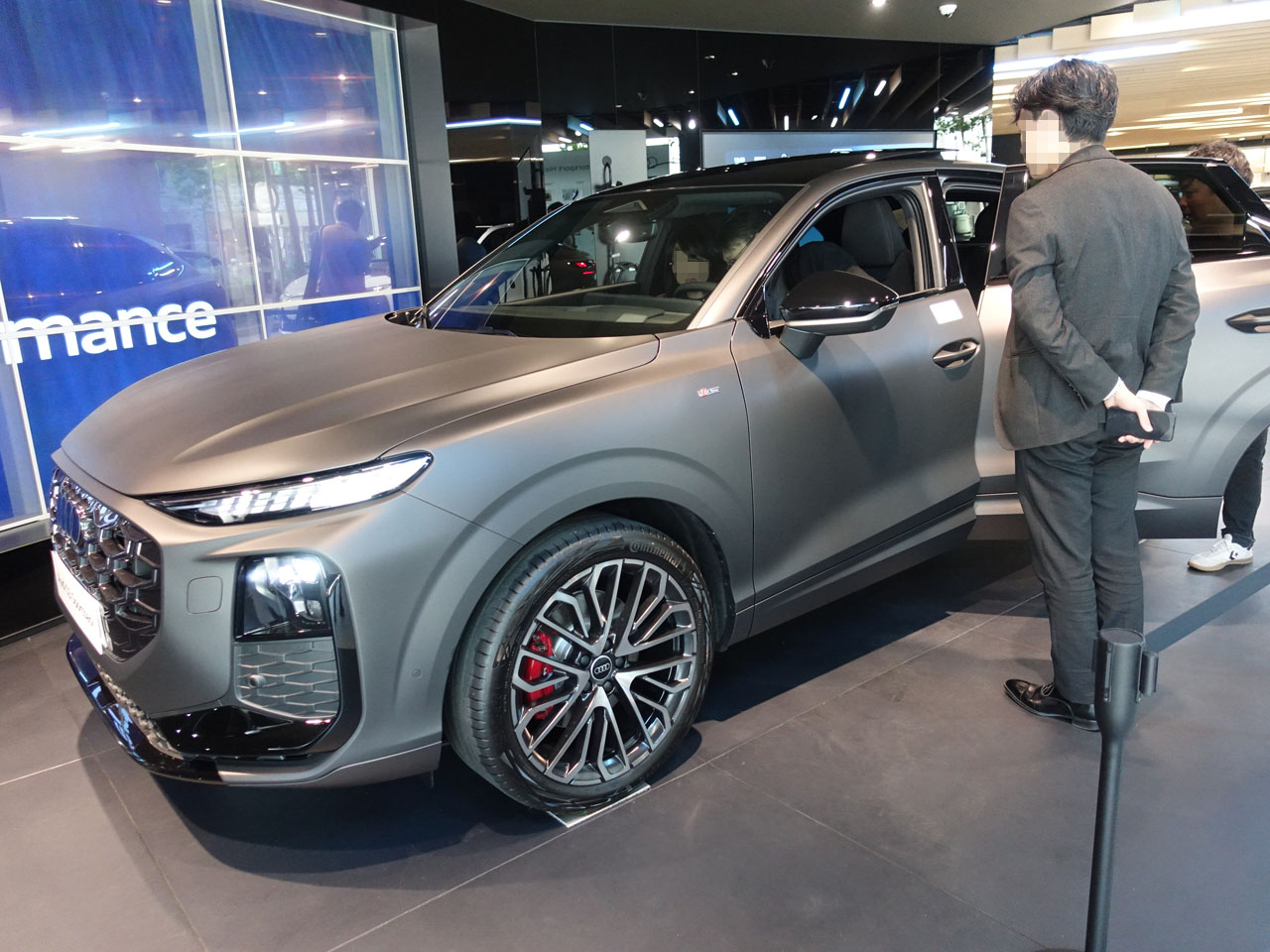 ジャパンプレミアされたQ3 SportbackをAudi City銀座に見に行ってきました!やっぱり私がQ3で選ぶならスポーツバックですね。先代も同様ですが今回も抜群にスタイリッシュ!S lineモデルです。ただこの車はご覧のように本国仕様、日本仕様とはかなり違いますので誤解のないようお願いします。エディション1はかなり似た仕様になるようですよやはり、ただパノラマルーフは付かない、と営業さんが誰かに言ってました(笑)マットカラー(マデイラブラウンマットエフェクト)は私は乗ったことがないので興味はありますが、でも勇気がありませんね・・・大変そう。車がこのボリュームなのでホイールはもはや20インチが必須だよね~と思ったらこれも、日本ではエディション1のみ、19インチしか選べないみたいです・・・やっぱり・・・残念としか言えません!インテリアは真剣にずっと計器類を触っているご夫婦が長くなりそうなので退散しました。