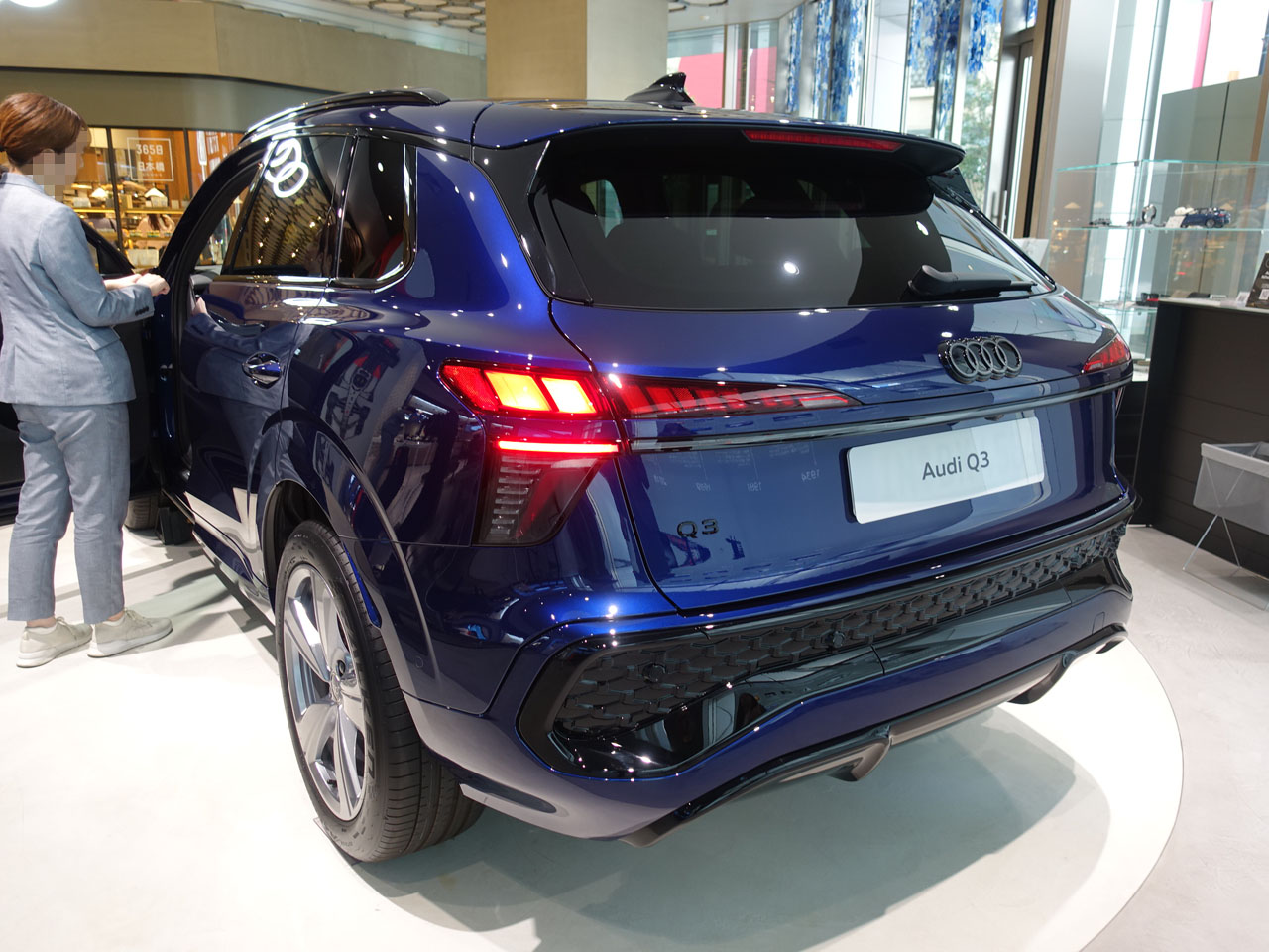 ところでNewQ3のテールランプ、2台の違いがわかりますでしょうか?左がLEDリアライトプロとか本国では呼ばれているようですねOLEDによるパターンが選べるタイプ、それに対して右は通常のLED、日本はどうなるんでしょうね?噂では右だと・・・どうしても信じたくない(笑)