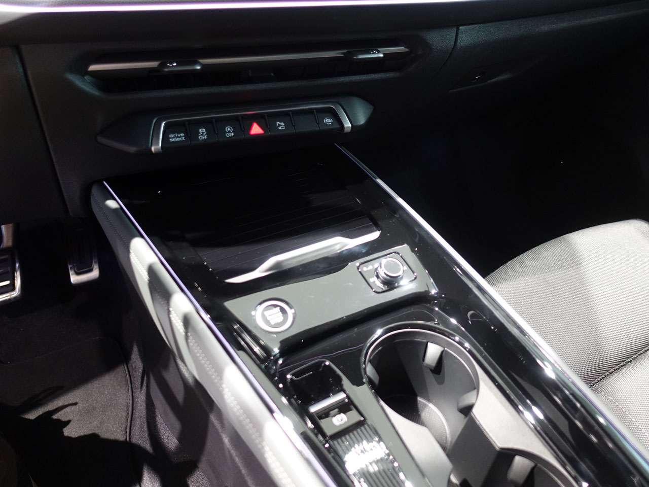 ハシゴでAudi City日本橋へ、こちらはスポーツバックではなくSUV S lineのナバーラブルーが展示されていました。ホイールは20ではなく19インチ、たった1インチなのにここまで印象が違う!上のスポーツバックと見比べるとその差は歴然・・・AJさん20インチを導入すると何となく見映えだけでも売れるようになりますよ!こちらはインテリアを見ることができたのですが、シートは手動でシートはファブリックなのでだいぶ日本仕様とは違うと説明してくれた方がおっしゃっていました。でも現行型と比べれば新しさはMMIパノラマディスプレイになったことで一新され、意外にインテリア素材も一時期ボロクソに言われていた頃からは復活した感じです。パッセンジャーディスプレイがないのが残念です。F1グッズがたくさん置いてあったので私も買いたかったのですが、サイズ等の問題で買えませんでした・・・残念!オンラインショップで購入することにします。