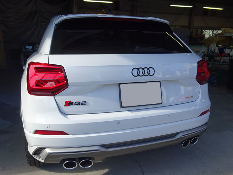 こちらは現行、RS 7スポーツバックでお客様が来店ですありがとうございます。以前ブラックエンブレムへの交換等でもご利用いただきました。早速ですが今回のご用命はというと、意外かも知れませんがエンジンオイル、フィルター、ドレンプラグOリングの交換です。リフトがありますし全く問題なくできますのでよろしければ皆様も是非ご用命ください。エンジンオイルは純正と社外どちらも扱っております。さてまずはリフトに乗せ、エアサスをタイヤ交換モードにしてから上げてアンダーカバーを外します。