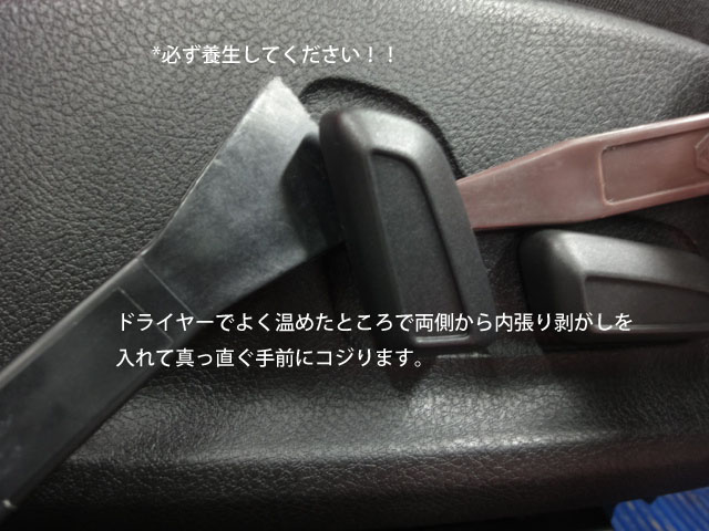 NewG-Speed+Audi純正ドアワーニングランプキット(DIYも可)取付マニュアル 作業は金属の角が鋭く手を負傷する場合がありますので必ず手袋をはめて、各部にキズ等つかないようにマスキングテープ等で十分に養生してから行ってください。マニュアル内の写真はわかりやすいよう素手で養生していない場合がございます。 ドアが開いていると危険を知らせるワーニングランプ、何故かアウディは省略されていきます・・・そんな時はこのキットで復活させましょう。4ドア用ですとハーネス長めのフロント用と短めなリア用がありますのでドアに合った方を使ってください。まずはリフレクターを外すところから始めます。グリーンのラインの切り欠き、ここを付属の見栄えが悪いので改良が必要な付属のマスキングとガムテープで養生します。これまた付属のマイナスドライバーでご覧のようにコジります。必ず新品のワーニングランプで外す仕組みを理解してから行ってくださいスムーズに作業できます。すると当然下に押し気味だと外れやすいことがわかります。 同様に養生してからカーテシランプも外します。ひざが触れますので何か敷くか汚れてもいい服装でないと力が入らず苦労します。こちらは点灯していますのでコネクタも外します。ロックをドライバーまたは手で押して外しますがハーネスが短くギリギリですからあまり引っ張り過ぎず、でも中に引き込まれないようにしっかり押さえてください。もう片手はハーネスキットの二股コネクタのオスを持ちコネクタをカチっとロックがかかるまで差し込んで接続してしまいましょう。これまた付属の配線通しのようなもの(笑)を内貼りに沿うようなお好きな形に成形してどちらでもやりやすい方で構いませんカーテシからでもワーニングからでもとにかく両方の穴に通します。私はワーニングからカーテシに輪っかのない方を通しました。通ったらコネクタのテープを外し引き込まれてしまわないよう新しいワーニングランプにコネクタの向きに注意してパチンというまで差し込んでしまいましょう。この時点ではきっともう電源タイマーが切れてしまっているので点灯しないと思いますが気にする必要はありません。リフレクターと同じ向きに小さくパチンというまでワーニングランプを差し込み、取り付けます。 次に二股のメスコネクタに元々付いていたカーテシランプをカチンというまで差し込みます。このキットは汎用性を持たせるため長めに作ってありますので余ったハーネスはこれまた付属のタイラップでまとめますが音がしにくいようにスポンジを全面に巻いてあるというG-Speed手作りならではの静音配慮型、なのでコネクタを包み込むようにまとめるとなおよし。カーテシの穴から入れて最後にカーテシランプをパチンと入れれば終了! ドアを閉めて開けると、点灯しているはずです。やりがいでオー~っと言ってしまうこと間違いなしです(笑)ついでですがワーニングランプは何と電球、LEDに交換してしまうとより明るく点灯します。またまたついでにカーテシランプを8Kにも!Audi純正RSモデル専用Audi SportカーテシLED左右セットタイプ2やAudi純正ドアカーテシ用LEDバルブレトロフィットキットタイプ2に交換してしまうという方法もあります。 そして肝心のワーニングランプキットの商品ページはこちらG-Speed+Audi純正A4(F4)/A5(F5)用ドアワーニングランプキットとなります。DIYは楽しい反面自己責任となりますのでご了承の上作業をお願いいたします。 AudiAG純正イルミネーションドアシルプート交換マニュアル 作業は金属の角が鋭く手を負傷する場合がありますので必ず手袋をはめて、各部にキズ等つかないようにマスキングテープ等で十分に養生してから行ってください。マニュアル内の写真はわかりやすいよう素手で養生しておりません。 最初は作業に慣れていないのでなるべく運転席ではなく使用頻度が少ないドアから取付しましょう。現状でドアシルプレートが付いている車両が日本の場合は多いと思いますので取り外しから。なるべく薄く広い内貼り剥がしを用意して、しっかり養生してからドアシルプレートとドアシルの間に慎重に入れていきます。ドアシルプレートはA3とA1の場合は単に両面テープで接着されているだけですがA4の場合は位置決めが1枚に1ヶ所あります。内貼り剥がしがカチっと止まってしまった場合はその場所を避けて入れてください。両面テープを切るようにして順次内貼り剥がしを入れていって外します。 ご覧のようにシルプレート裏にはべったり両面テープが貼られていますので結構力が要ります。ここからが作業のポイント、残ってしまった両面テープをきれいに掃除します。量販店さんなどで売っている脱脂剤いわゆる「シリコンオフ」を使用します。必ず最初に目立たないところで塗装が剥がれないことを確認してください。新しい車でしたらまず大丈夫なはずですが念のためお願いします。きれいな布に含ませて十分浸透