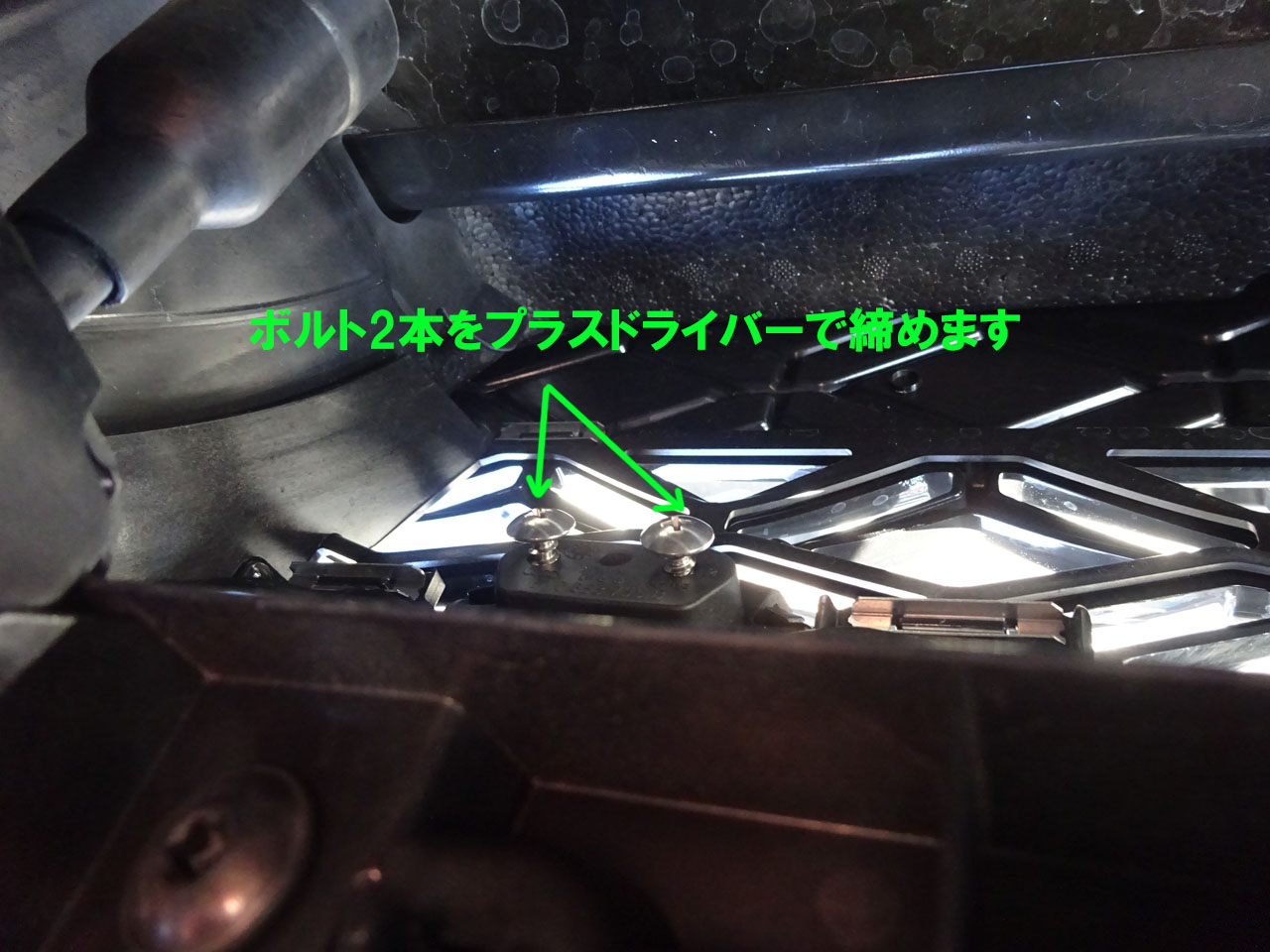 一番前方にネジが2本ルーフパネルに向かって見えますので外します。