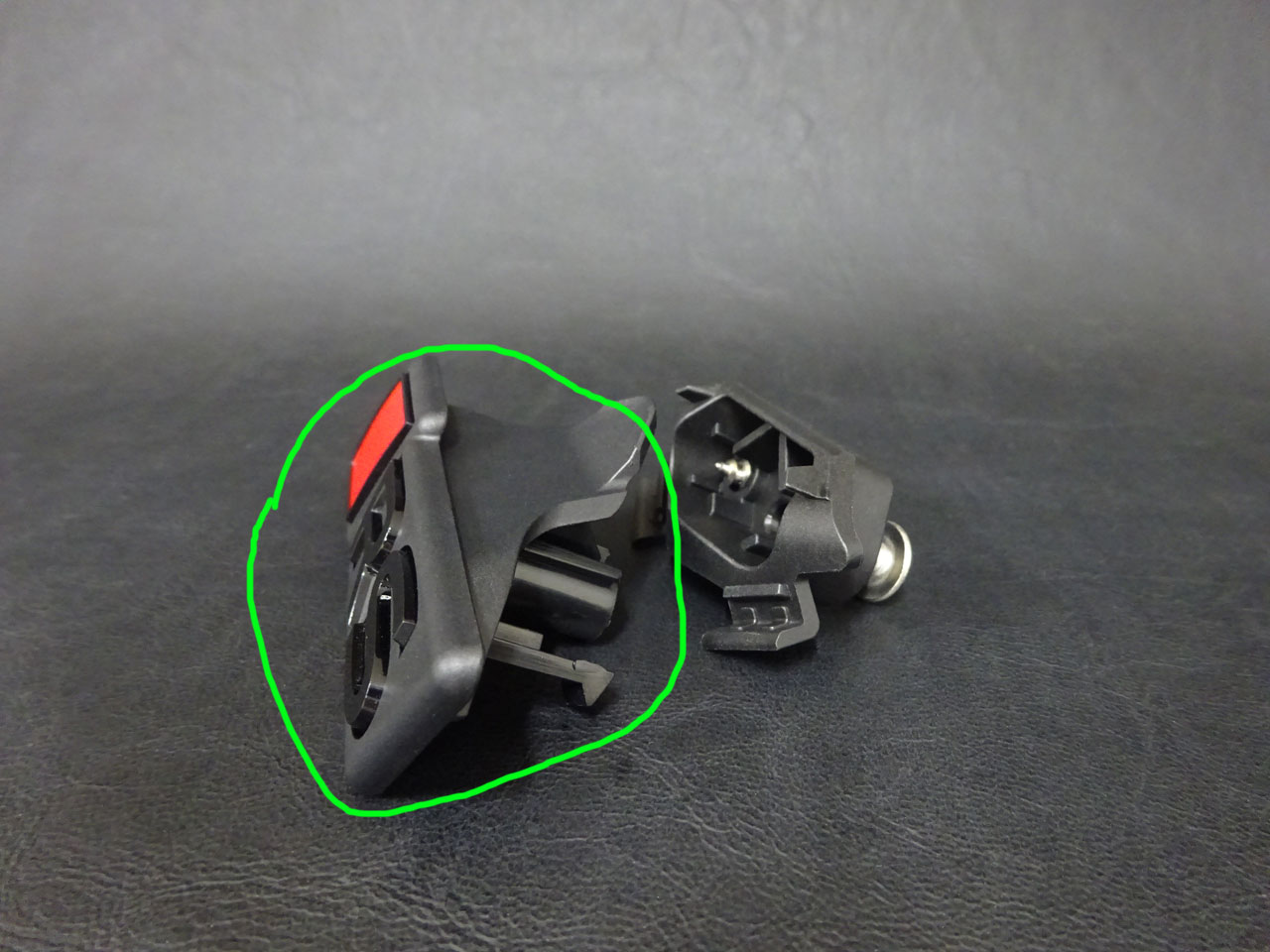 結構雰囲気が変わりますね。交換もやってみると結構簡単ですのでチャレンジしてはいかがでしょうか?商品ページはこちらA3MY09ヘッドライトスイッチです。 A38P用S3純正ペダルの交換マニュアル 現行型A38Pのペダルは黒い樹脂製でスポンジーな寒色、少し寂しいですよね。そこでS3に標準装備されているメタル製ペダルへ交換となるわけですがその交換方法を今回はご紹介します。 まずはアクセルペダルの裏側のコネクタを外します。よく見ると赤いピンが右側についているはずです。これは抜け防止のロックですのでこれを矢印の方向へ手で3mmくらいでしょうか引きます。ピンはあまり強引に引くとちぎれることもないとはいえませんので注意してください。止まったところで軽くピンを握りながらコネクタを持ち、先ほどと同じ方向へコネクタを抜きます。 次に左側にあるフロアに止めてあるビスのフタをコジり外し、見えたトルクスビスを外します。 次に取り外し工具有りを選択した方は工具をTOP刻印を上にして手前から差し込んでいきます。止まるところまで静かにしっかりとゆっくりと左に右にクイクイしながら差し込んでいきます。差し込みが甘いとパッチン止めがリリースされず外れませんしペダルASSYが破損する可能性がありますので十分注意してください。止まったらそのままペダル全体を上に引くと、右の写真のとおり外れます。 逆の手順で戻します。ここまできたらラストスパート、プレーキペダルパッドは手で左の写真のように手前に剥がします。右の写真のようになりますので逆にかぶせていきます。