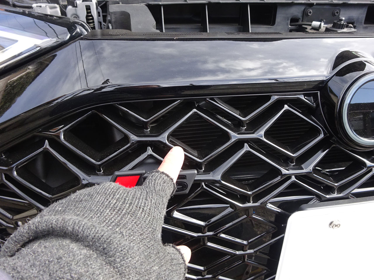 Audi純正FL後RS 3(GY/8Y)用RSロゴグリルエンブレム取付マニュアル 作業は金属の角が鋭く手を負傷する場合がありますので必ず手袋をはめて、各部にキズ等つかないようにマスキングテープ等で十分に養生してから行ってください。マニュアル内の写真はわかりやすいよう素手で養生していない場合がございます。 まずはボンネットを開けます。グリルの上側カバーが見えますのでそのクリップ6個を外します。クリアファイルの切れ端か何かで養生しながら上の丸い部分だけを上に1cmくらいでしょうか止まるところまで上げます。上げて浮いたところだけをつまんで上げるとクリップ全体が浮いて外れてくれます。次はフードオープニングレバーです奥側を「しっかり」押してください。「しっかり」押しながらレバー全体を上に持ち上げると、ちょっとひっかかるかも知れませんがレバーが外れます。 外したレバーを奥側から見ると、四角い部分、ここを押すわけです。もし外れなかったら、四角い部分を逆にコジって出しても外れます。そしてカバーの前側がグリルの下に少しだけ潜っていますが、全体を矢印方向に動かすと外れます。これでまずは一段落です。 いよいよエンブレムを入れていきます!お手元に届いた段階では右上写真のようになっていますが、実は2つに分かれます。丸で囲った左側のみをまずグリルの表側から、指さししている位置に、エンブレムの上側をグリルの裏にさくっと差し込む感じで入れていきます。 上側がグリルの奥に入りましたね。そのまま今度は下側の左右2個のツメを入れるように 下側を指で「パチン」という音がするまで押し込みます。慣れていない方はもちろん表面を養生してくださいね!「パチン」と入ったらまず表側は終了です。お~~~~~って感じですね見ると。小さいレッドランバスとロゴエンブレムが付いただけで全然表情が変わります。 今度は丸で囲った右側のブラケットをグリル裏からこの向きですよヒレのような部分が下ですご注意ください。右写真は裏から入れた後を写したもの。すーっと入らなかったら向きが上下逆と思ってください。向きがあっていればすーっと入ります。そしてどこのご家庭にもありますねプラスドライバーで2個ボルトをしっかり締めてください。純正ボルトはスチールですが、G-Speedではステンレスボルトを使用しているので錆びません。 さすがは純正、後付け用に設計しているので、それを全く感じさせないようなフィット感、さすがです。あるとないとじゃ大違い、はまさにこのことを言うんですね!商品ページはこちらAudi純正FL後RS 3(GY/8Y)用RSロゴグリルエンブレムとなります。DIYは楽しい反面自己責任となりますのでご了承の上作業をお願いいたします。 G-SpeedオリジナルNew S3/A3(8V)用RHDステンレスフットレスト取付マニュアル 作業は金属の角が鋭く手を負傷する場合がありますので必ず手袋をはめて、各部にキズ等つかないようにマスキングテープ等で十分に養生してから行ってください。マニュアル内の写真はわかりやすいよう素手で養生しておりません。 まずは届いたフットレストをご覧ください。標準の上に予めステンレス部が固定してあるいわば完成状態での届きますので比較的交換は簡単かと思います。右写真はは裏のツメの構造です。2つのツメでフロアのブラケットに固定されており、上にスライドさせると外れます。これを理解しておくと作業がスムーズに進みます。またフロアマットは必ず外します。 おおまかに言いますと1個の樹脂ナットと1個のボルトを外してフットレストの上下を持って上にスライドさせる、です。 細かく説明いたします。フットレストの一番右、ブレーキペダルの奥に樹脂ナットがありますのでそれをマイナスドライバーで反時計回りに緩めて外します。次は踏面の右側に穴がありますがその奥にトルクスT20ボルトがあります。それをやはり反時計回りに緩めて外します。結構長いボルトですからひたすら回します。 2個外れたら左写真のように両手でフットレストの上下を持って上にスライドさせます。外れにくい場合は小さい矢印のように少しフットレストの持った部分を右に広げるように持つと楽に外せるかも知れません。すると右下写真のように2cmくらいでしょうか上にスライドさせたらツメが外れます。もうフリーになっていますのであとは車外へ出せば、外すのは終了です。 組むのは逆手順となりますが樹脂ナットは入れる際回す必要がなく押し込めば締まりますので楽です。見違えましたねこうなるとフットウェルライトが欲しくなりますね! DIYは楽しい反面自己責任となりますのでご了承の上作業をお願いいたします。 (FL前)AudiAG純正S3(8V)用Fキャリパーリペアキット交換マニュアル 作業は金属の角が鋭く手を負傷する場合がありますので必ず手袋をはめて、各部にキズ等つかないようにマスキングテープ等で十分に養生してから行ってください。マニュアル内の写真はわかりやすいよう素手
