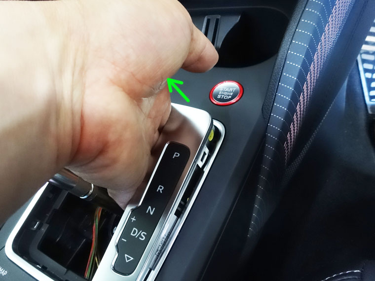 AudiAG純正Q2/S Q2(GA)用Fドアカーテシハーネスセット装着マニュアル 作業は金属の角が鋭く手を負傷する場合がありますので必ず手袋をはめて、各部にキズ等つかないようにマスキングテープ等で十分に養生してから行ってください。マニュアル内の写真はわかりやすいよう素手で養生していない場合がございます。 まずはドアを閉める際に握るドアプルハンドルの上半分のトリムを外します。とにかくまずは養生です、アルミ調のパーツには特に入念に貼りましょう。できれば左右両側からなるべく薄い内貼り剥がしをシルバーのトリムとその裏の黒いプラスチックの間に入れて手前に同時にコジるとちょっとパキっという音で少し外れて浮いてくれます。そしたら片手でトリムを持ち養生したアルミ調リングの方からコジって浮かせてもう片手は手前に引っ張ると、バキっと外れてくれますからだんだん上側へと左右からコジってください。ツメが全周ありますよね何個あるんだ!というくらい、とにかくこのトリムは固いで注意してください全体の3割の力を使うイメージです。しかも真ん中にもクリップ2個で固定されており、そのクリップもトリムに付いてきてしまうことがありますのでその際はドア側に戻しておいてください。そして中にやっと見えましたT25ボルトを外します。 ボルトはもうひとつアームレスト下にもあります計2個、どんどんボルト減ってますね。そして後ろの角から手前にコジって内張りのクリップをバキ、バキっと右下写真のクリップ位置を参考に外していってください。ただ後ろのいちばん上の隠しスプリングクリップは手前ではなく上に持ち上げて外しますそこがポイントです。そしてこのクリップは入れる時は上からではなく正面からバチン!と入れます。 次は内張りの裏側ですねドアハンドルのケーブルを写真のように外し、ドアコントロールユニットのコネクタも外します。S line等ドアシルプレートがイルミ付きの場合はもう一つコネクタを外します。これで内張りは車両から外れました。 ここからは説明書が付属しますので左ドアをちょっとあっさり説明しますね。ドア内張りをしっかりと養生した上で天地逆にして穴を開けるところにマークを付けます。付属の型紙をカットして内張りの所定の位置に合わせるとあら不思議、ぴったりと収まります。車両前側にはコネクタが付きますからね少し後ろ側に穴が開きます。右ドアはその型紙を裏返しにしてください。それを点線にそって折り曲げて固定して、マジック等で穴の内側をなぞると、はい、長方形にマークできました。よく切れるカッターの先を一つ折ってなるべく切れる状態でマークの外側を少しずつですよ切っていきます。一気に切ろうとせず少しずつ、曲がらないように切ります。手袋必須です内張りは柔らかいとはいえ、カッターを持つ手が痛いですからご注意ください。 切り終わったらLEDを入れてみて、小さければ少しずつ広げます、それを繰り返して、入りました!あとはハーネスキットを説明書を見ながら付属のクリップやタイラップを使用して這わせていき、取付完了となります。このハーネスキットのコネクタ自体はドアコントロールユニットの外した青いコネクタの下に余っている小さいコネクタにパチン、と入れます。コネクタには音防止のため付属のスポンジを巻きタイラップで固定します。 商品ページはこちらAudiAG純正Q2/S Q2(GA)用Fドアカーテシハーネスセットとなります。DIYは楽しい反面自己責任となりますのでご了承の上作業をお願いいたします。 Audi純正Q2(GA)用レッドトリムスタートストップスイッチ交換マニュアル 作業は金属の角が鋭く手を負傷する場合がありますので必ず手袋をはめて、各部にキズ等つかないようにマスキングテープ等で十分に養生してから行ってください。マニュアル内の写真はわかりやすいよう素手で養生していない場合がございます。 A3よりもはるかに簡単ですので是非チャレンジください。マニュアルの写真はほぼ交換後に撮影していますのでご了承ください。ほぼ他の車種と同じですのであっさりと流れのみご紹介します。シフトブーツとシフトゲートトリムの間を養生した上で内貼り剥がしでコジります。ブーツをめくり上げたら反時計回りに止まるまで樹脂ナットを回します。シフトノブを「シフトロック解除ボタンを持たずに」左右を持って上に強く引き上げます。 抜けたら今度はツメで止まっているシフトインジケータートリム前側を先に引き上げます。後側はスムーズに抜けてくれるはず、無論コネクターも外します。するとスタートストップスイッチ裏まで手が届くようになりますので手を入れて下から上に向かって、少し抜けにくいようであれば左右に振りながら、引き上げます。すると、ハイ、抜けました。コネクタを外して、あとは逆手順です。 商品ページはこちらAudiAG純正S Q2(GA)用レッドトリムスタートストップスイッチとなります。DIYは楽しい反面自