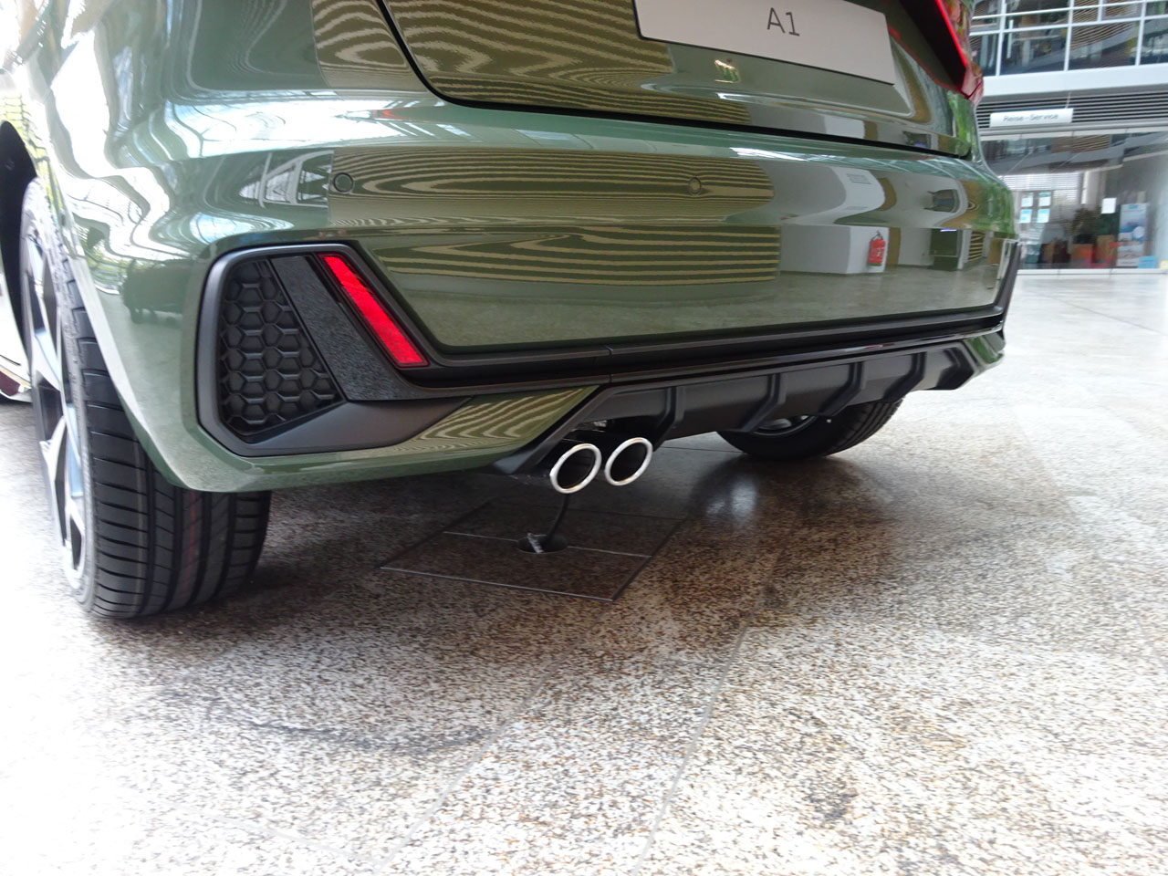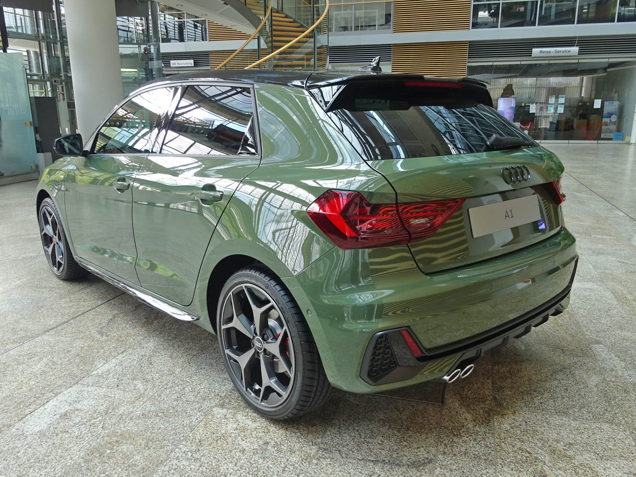 インゴルシュタットの庭には納車ホヤホヤ、ショールームにもA1スポーツバックが展示されていました。どちらもいい!ディストリクトグリーンのボディカラーにブラックスタイリング、奇しくも2台とも見たことがないダークな18インチアルミ、これも他モデル同様クリアにブラックが混じっていて少しシルバーのトーンが落ちてます。A1にはRSモデルがないのになぜかRSロゴ(笑)トーンが落ちているからブラックスタイリングにはピッタリですね!グリーンの車両はA1なのに40TFSI、何と2Lエンジンを積んでいるんです驚き、しかも2018年からずーっとあるということは、結構需要があるということ、ちなみに40だけはツインテールパイプ、しかも下向きで見えないのではなく、テールパイプトリム付きでちゃんと横に出てますよね!日本は25と35なのでテールパイプはシングルで見えないように下向きに出るようにされています・・・もちろんブラックスタイリングも40エンジンも18インチも日本はなし!