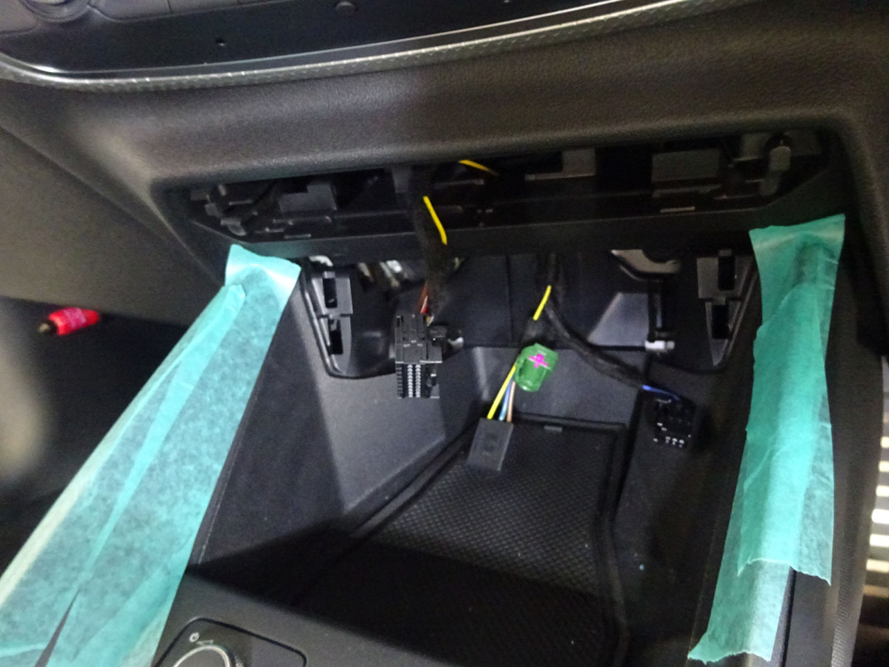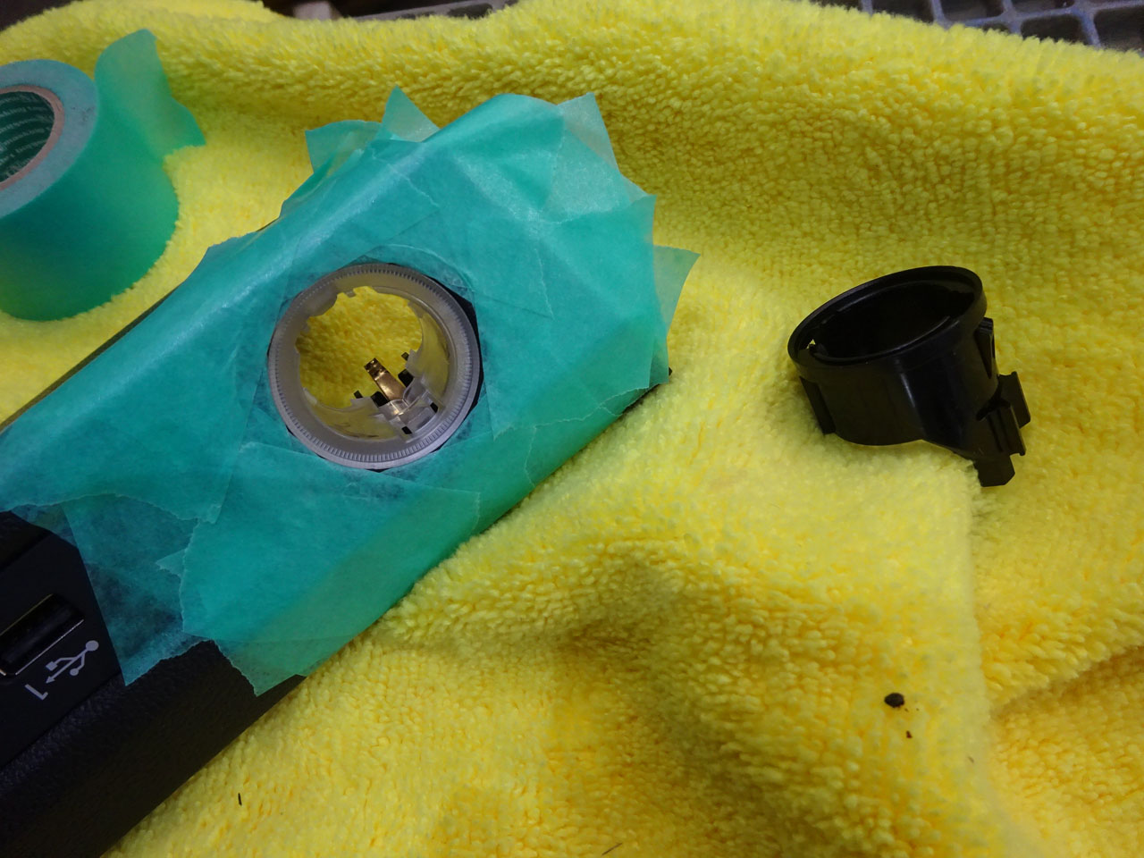 ご用命はというと、シガライターのイルミが海外仕様では光っているが、光らない、寂しいので光らせることはできませんか?とのこと。もう即答ですね「できます!」元々Q3なんかもそうですが、19年モデルまでは光っていましたし・・・イルミだってそのすぐ上のスイッチASSYまで来ていますし、配線図を見るとそのスイッチASSYから分岐して光らせていたと。さあやりましょうスイッチASSYとシガライターのパネルを外して、黒いリングを光る半透明のリングに交換し戻します。