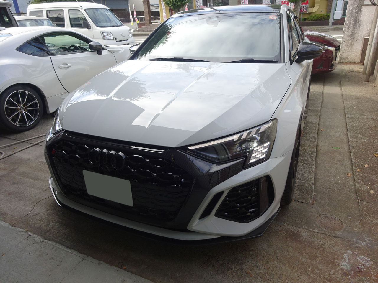 何度も登場いただいております2024年モデルFL前RS 3(GY/8Y)スポーツバックでお客様が来店です。ありがとうございます。いつの間にかまたカーボンパーツが増えているような(笑)早速ですがご用命はというと、この使いにくいドリンクホルダーともお別れですねイルミがフロントのトレーにしかないセンターコンソールが変わります!G-Speed+Audi純正RS 3/S3/A3(GY/8Y)FL後用マルチカラー付きセンターコンソールセットへの交換です。早速センターコンソールはバラバラに