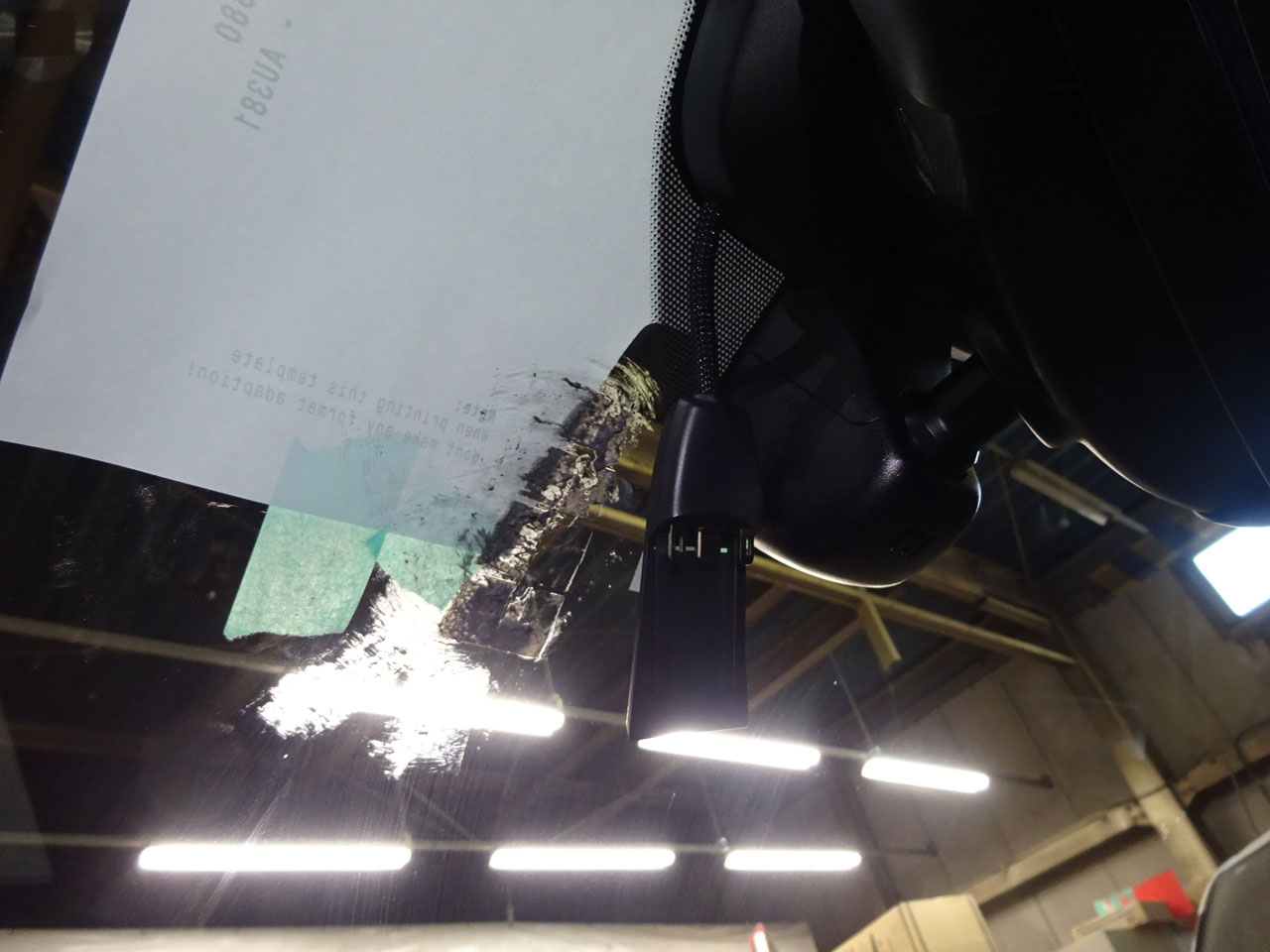 飛び石でガラス交換されたそうですが、せっかくきれいに私が貼りなおしたUTRもこのとおり・・・いろいろとこうしてああしてとお願いしたそうですが・・・亀の甲羅両面テープでエアが入りまくり、しかもそれが丸見えで耐えられない、ハーネスまで出てるし。諦めて「やって!」とのご依頼です。はい、型紙を使い正規の位置へ、ブラックのプライバシーフィルムも今回も奇跡的にきれいに貼れて、きれいになりましたね!作業にはアウディ純正ユニバーサルトラフィックレコーダーUTR2.0の補修用ステッカーセットが必要です。左下写真のハーネスが結構ずれているのは私のせいではなく、前の方が開けた穴が左すぎるだけです!でもガラスの黒い網部分に隠れたので外から見えないのでよしとしましょう。今回もご利用いただきましてありがとうございました!