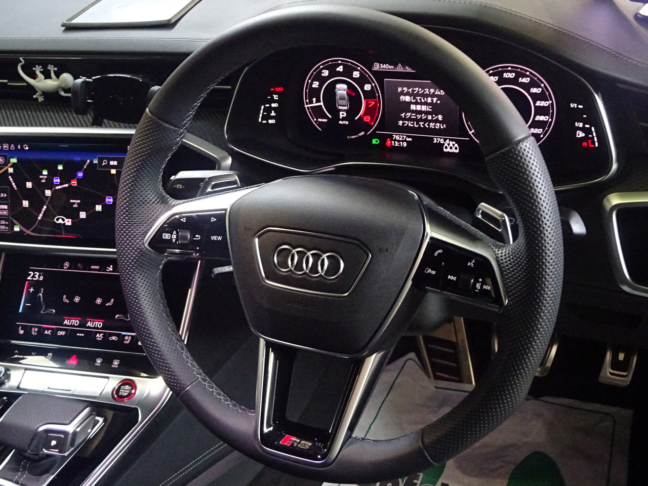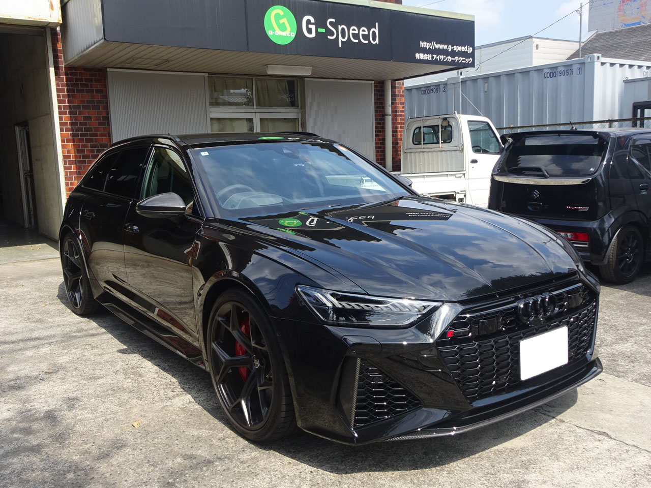 RS 6アバント・パフォーマンスでお客様が来店です。ありがとうございます。いずれもパフォーマンス、ブラックのRS 6アバント、グレーのRS 7ときてこちらもブラックRS 6とたて続けにいらしていただき、感謝でいっぱいです!世の中にはこんなにたくさん存在しているんですね(笑)またまたご紹介が遅れ大変申し訳ございません。さてブラックカラーにブラックの鍛造ホイール、ブラックAudi rings&カーボン/グロスブラックスタイリングパッケージ(長)と定番のブラックカラーですね!スポーツエグゾーストもブラックのテールパイプになるので、ブラックカラーには必須?