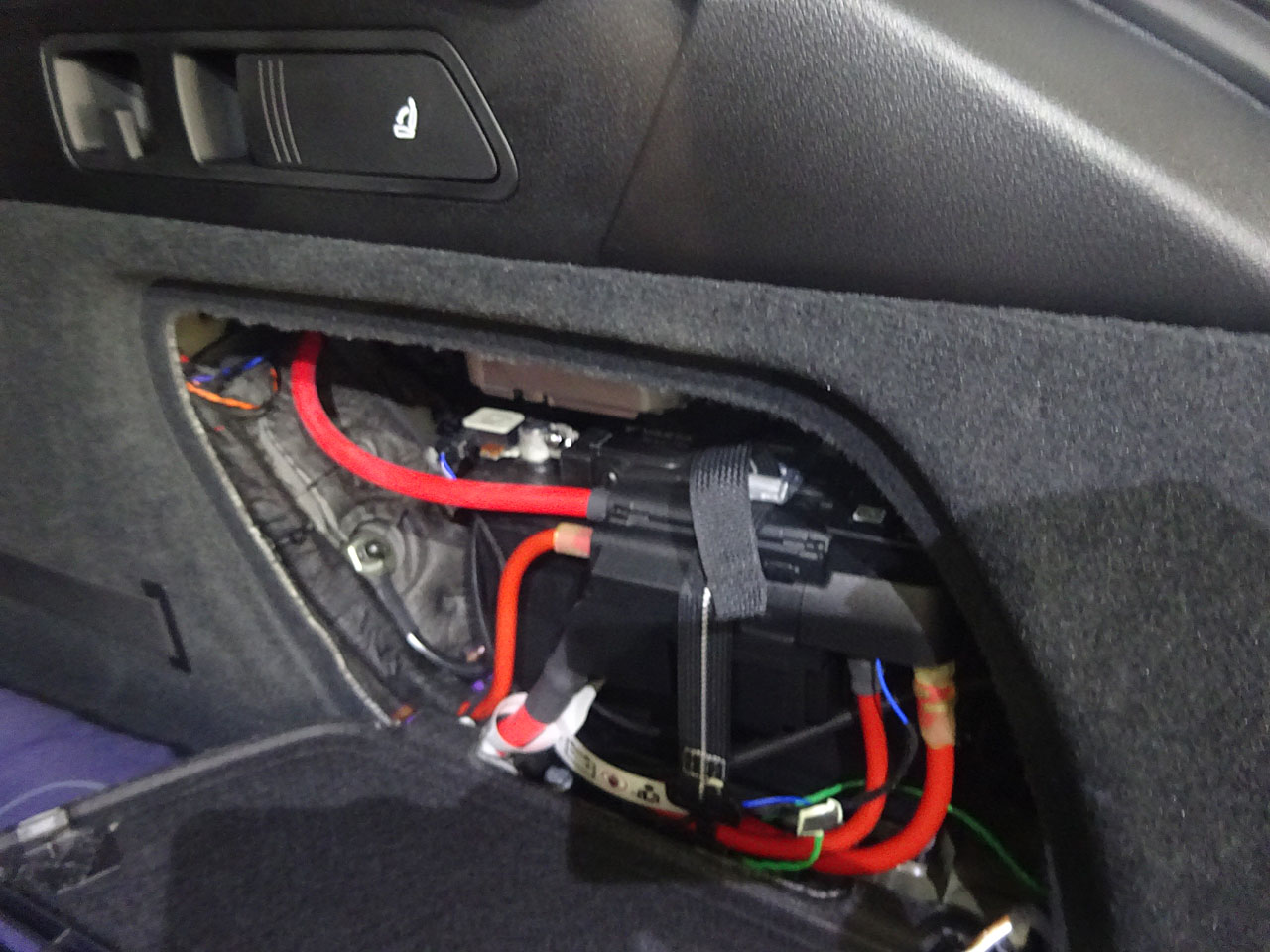 次は大ごとですねリアシートの座面を外してしまいます。ただこの作業、慣れれば結構すぐなんです。コツをつかめば座面は超固いツメで止まっているだけ、チャイルドシートを固定するISO FIXのアンカーもすぐ外れます。そして意外にも小さいラゲージ右側カーペット奥に隠されているバッテリーのマイナス端子を外し、コントロールユニットを外します。このユニットは電源入れたままはずしてはいけないんですよね身に染みてます。コネクターを外し、更にピンを外し、ユニットに直接ではなく一旦キャンセラー内の回路を経由させるようにします。間違えると大変なことになるので細心の注意を払って何度も何度も確認し、戻します。にしても毎回思います。水濡れ対策がビニール袋に入れること?そんなんでいいんだ(笑)座面を戻せば全くどこから見ても付いていることがわかりません。スマートですよね。付けるとご覧のとおりイグニッションONで自動的にアイドリングストップスイッチがOFFになります。押し忘れないので便利ですよね~私はいまだにA5は止まってから、「あ、また忘れた」なってます。ちなみにコードテックさんはA5用を開発しないそうです・・・ちょっと今回から変わったからでしょうね。