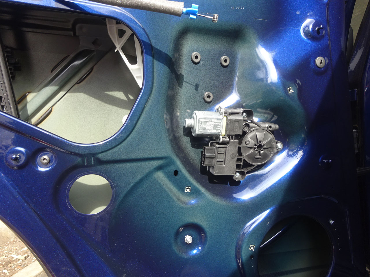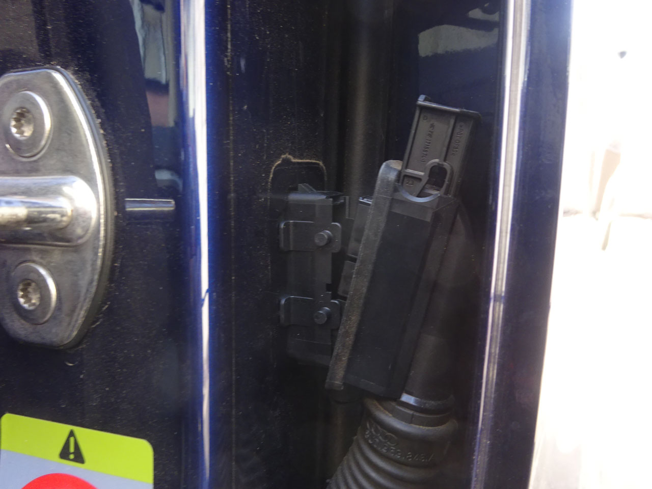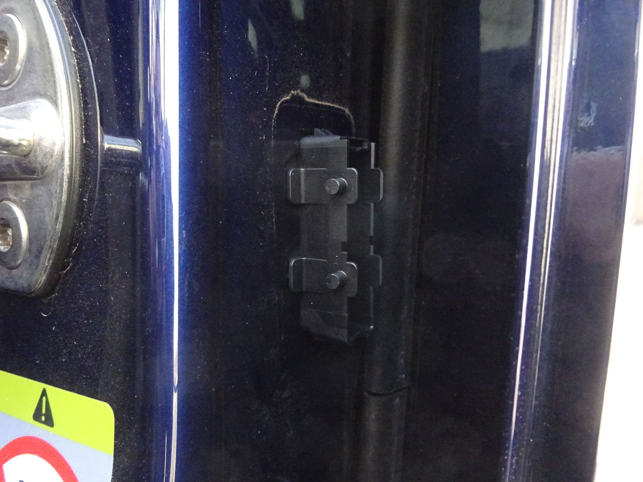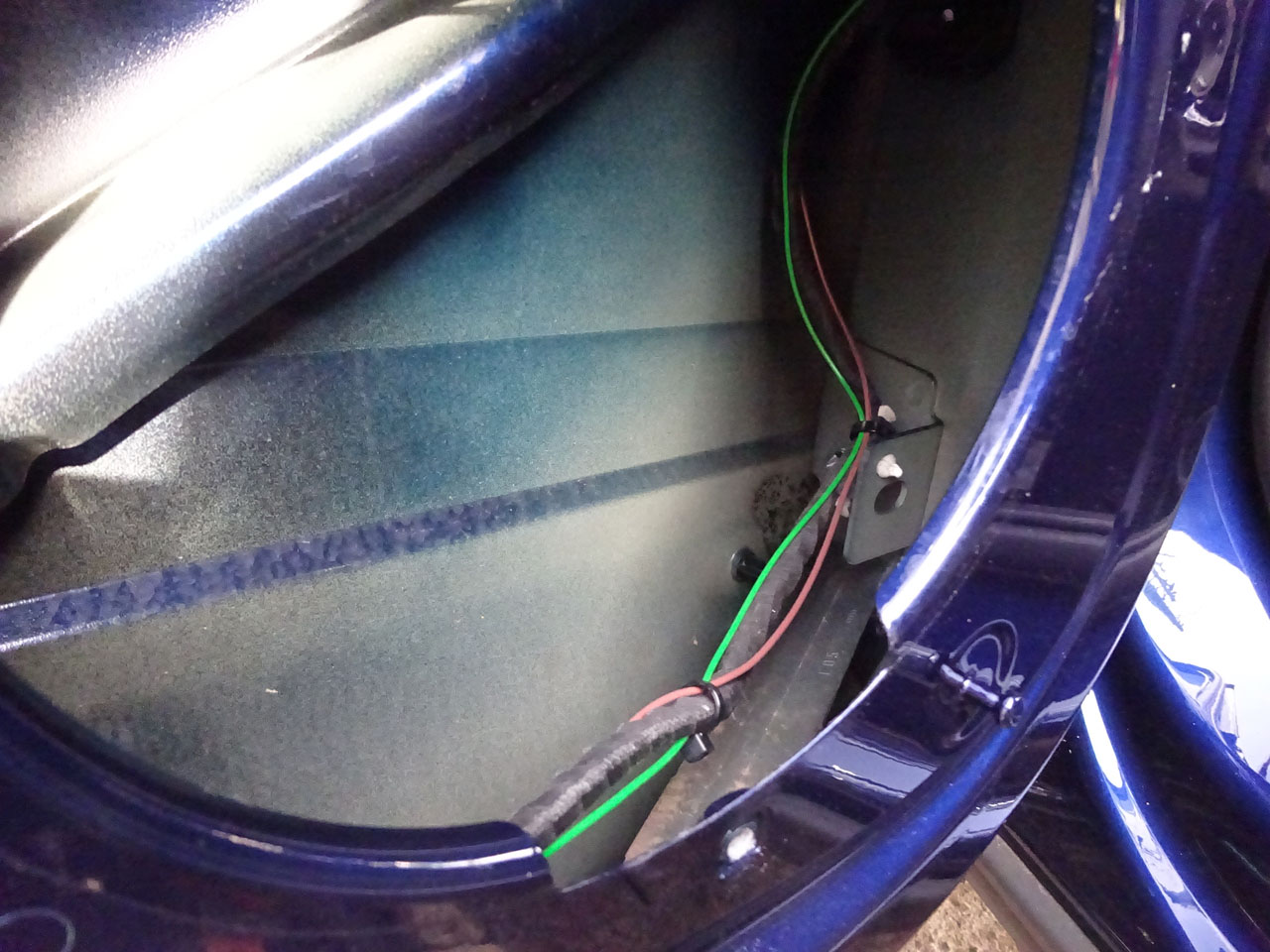今度はリアドア側、ドアトリムを外し、スピーカーや小窓を外し、ハーネスも全て外します。が、ここがミソ、角が全く面取りされていないので、触るとスパスパ手が切れます!生キズだらけになるので本当にきをつけなければいけません。私は素手かいつも使っている指ぬき防寒手袋で作業するので、指先がよく切れます(笑)そこにドアハンドルセンサーのピンメス側を圧着、オス側と同じ位置にパチンします。この位置にしたのはコネクタを少しずらすだけでパチンできるのを覚えていたから、えらいなと自分でも(笑)コネクターを戻しハーネスもしっかり固定したうえで戻します。