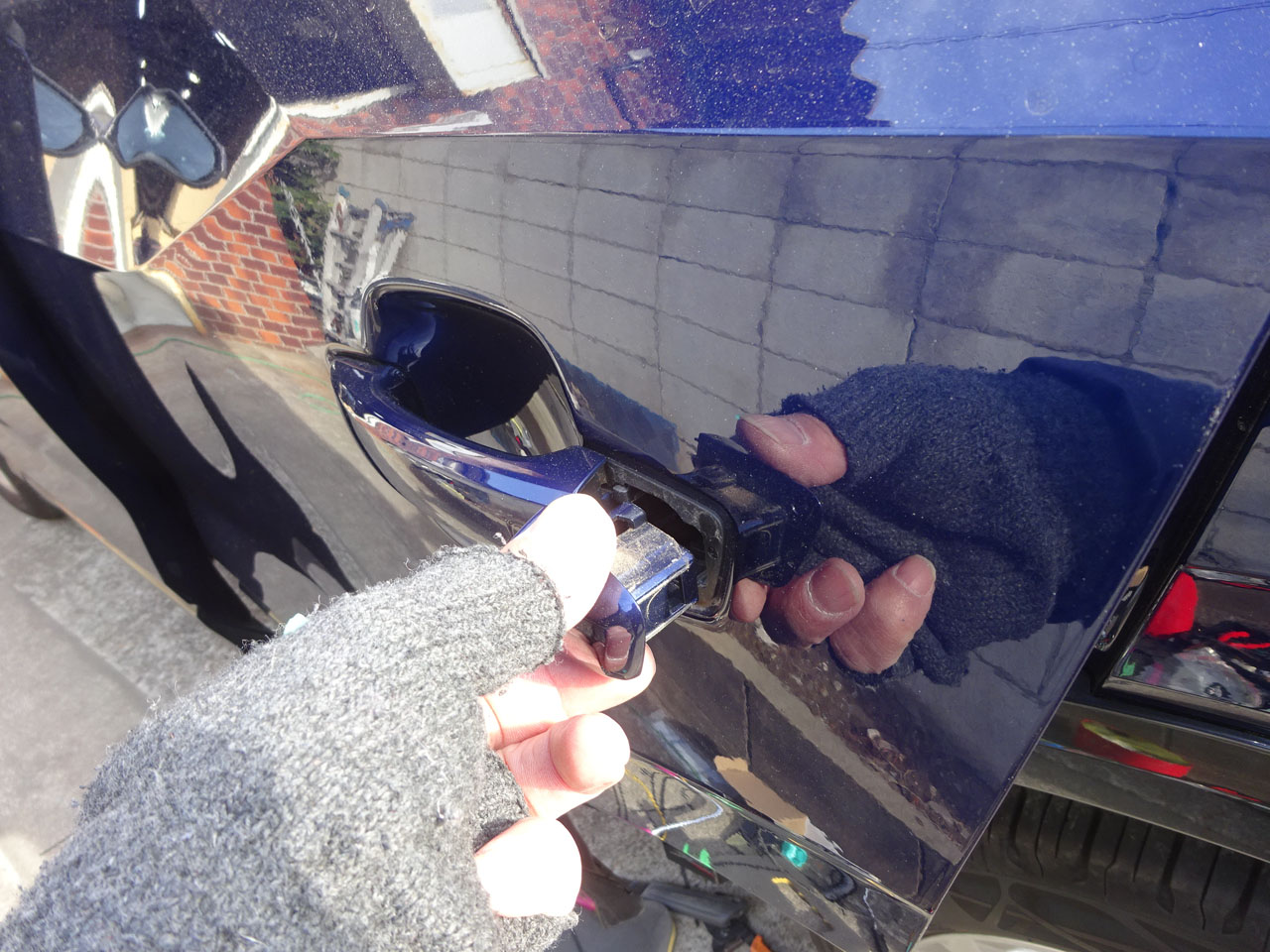 スカスカのドアハンドル内側のスライダーを引き出し、用意しておいたタッチセンサーもちろん純正パーツですそれをパチンとはめこみ、戻してコネクターを固定すれば、はい出来上がり、ドアに戻します。