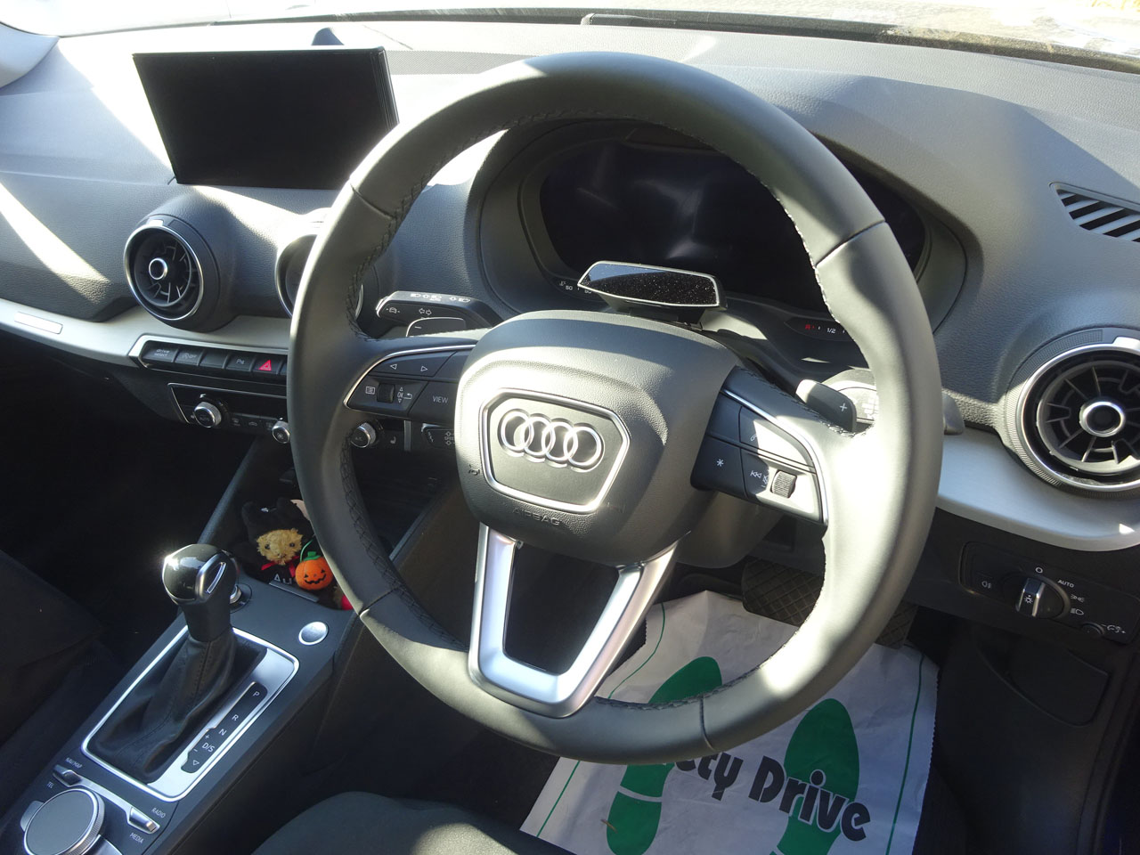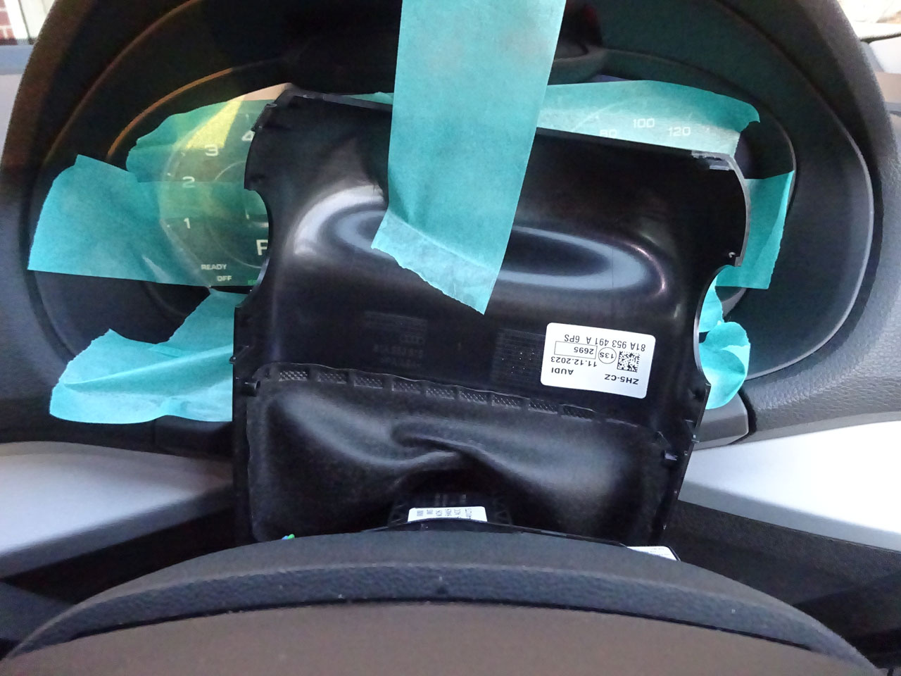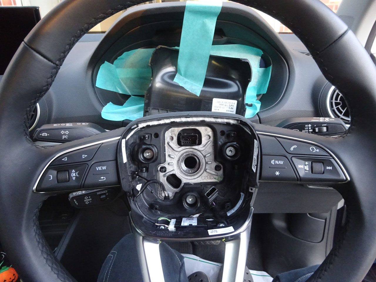 Q2の場合S lineはパドル付きですがアドバンスドはパドル無し仕様になっています。でも大丈夫!パンチングレザーでもなくS lineロゴもなくグレーステッチでもなく本国にはちゃんとアドバンスド用のステアリングがあるのです。早速交換!と思ったら・・・コラムカバー上側に何と疲労感知システムが鎮座、両面テープを剥がすと再度貼るのは・・・よしここは裏ワザで行こう!と秘技でコラムカバー上側のみをはずし養生をキッチリして落ちてこないように固定、110度ほど左右に切った状態でエアバッグを外すことに成功しました!今回も顔を真っ赤にして何とか一人で外せました。ホント、ディーラーメカさんが2人がかりじゃないと外せないというほど固いツメ、勘弁してくれ~はい、パドル付きステアリングに交換できました!なぜかMQBプラットフォームの場合コードを書き換えなくてもパドルが作動します。もちろん念願のパドル付きですからお客様に喜んでいただけました!今回もご利用いただきましてありがとうございました!