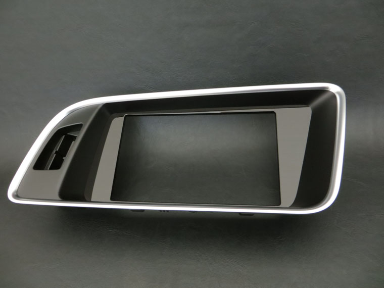 初のS Q5からの流用パーツ、お客様から教えていただきましたありがとうございます。写真ではわかりにくいかも知れませんがスクリーンの周りの縦部分がQ5は水平部分と同じ半ツヤブラック、それがS Q5ではハイグロスブラックに変更されています。水平部分はQ5と同じ半ツヤですがここをハイグロスブラックにしてしまうと映り込みがすごくなってしまうので仕方ありません。さりげないおしゃれですがMMIのCDを入れるパネルやエアコンパネルのハイグロスブラックパーツと統一感が出て相性は抜群です。
