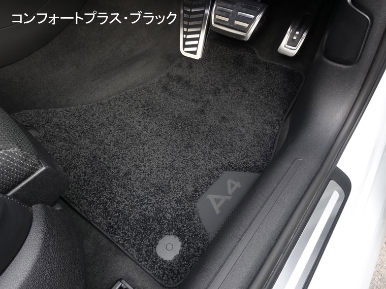 本国企画スポーツを追加しました。RS 3はプレミアムスポーツを選択ください。他のタイプを選択してもRS 3のロゴは付属しませんのでご注意ください。コンフォート・ブラックがコンフォートプラスへと変更されました。新しいプレミアムスポーツはもご覧のとおり高密度で厚さは何と約2cmと贅沢、またまた花粉等のアレルゲンを吸着し雑菌の増殖を抑制するアレルキャッチャー「プレミアム クリーン」を使用しています。花粉症の方にも舞い上がりにくいのでオススメです。またAudi Sportロゴ周りには贅沢にもリアルカーボンやアルミニウムを使用している点もまさにプレミアム。プレミアムスポーツはAudi Sportロゴ、それ以外はA3ロゴが前席2ヶ所となります。標準のフロアマットは薄くて冬は寒いし少しビジネスライクな感じが・・・断然こちらがいいと思います。前席左右、後席左右の4枚セットです。ラバータイプを除き価格には送料を含みます。