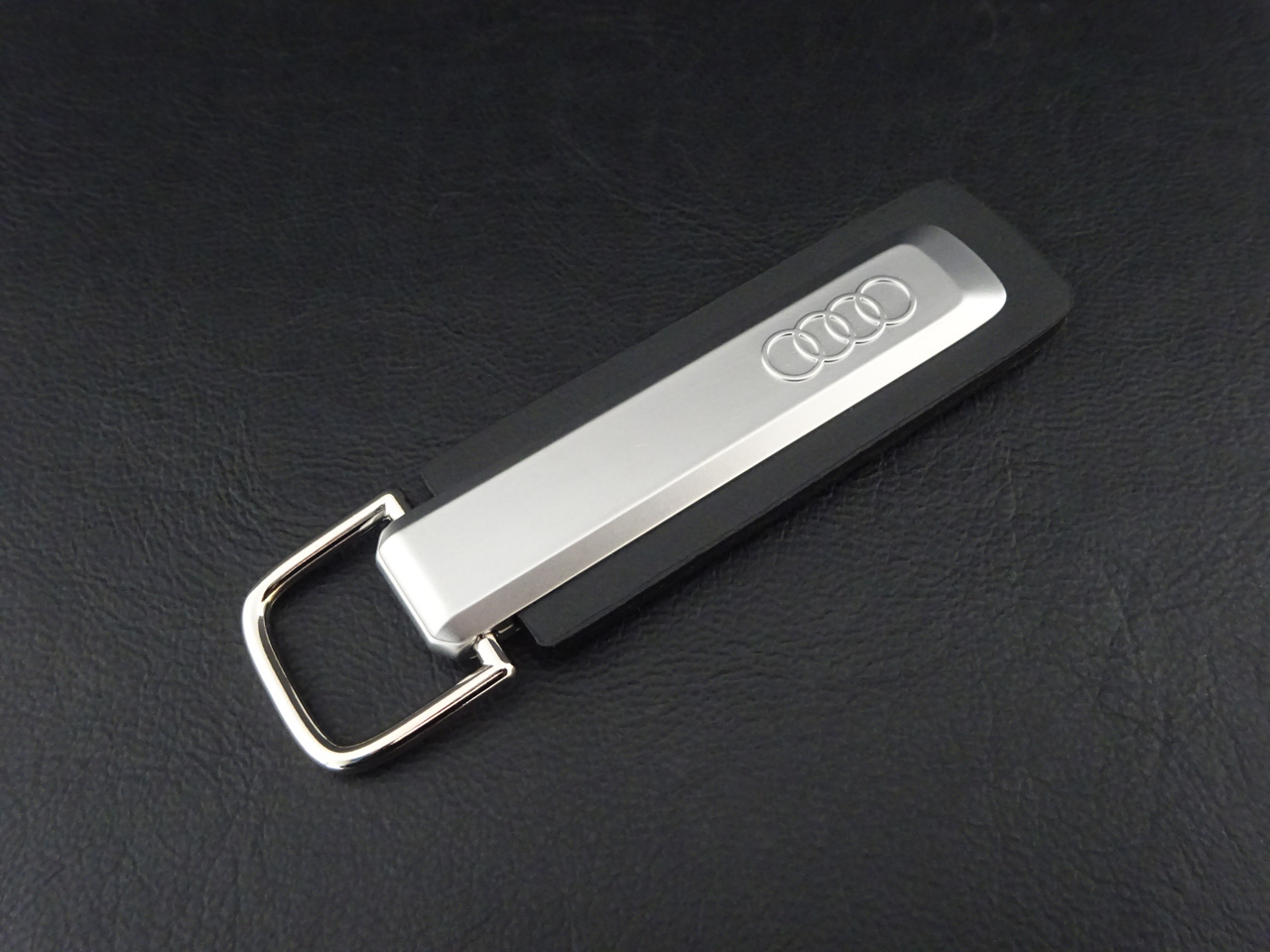2019年以来7年ぶりにレザーキーリングがモデルチェンジしました。アウディらしいブラックカーフレザーとシルバーのコントラストにフォーシルバーリングスロゴが入ったメタルを組み合わせたキーリングです。イグニッションキーはもちろんお家や部屋の用、ガレージ等使い方はあなた次第です。他にも車種別ロゴ入りも発売予定dす。上質な車には上質なアクセサリーを。
